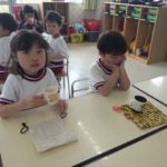 今日のたんぽぽ組は、小雨が降ってきたので「室内遊び」をしました。運動会練習が続いたので、友達と一緒に室内で遊ぶのは久しぶりでした。