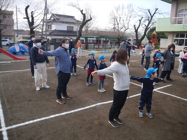 今日は「保育参観・保護者懇談会」第3弾で、年長組のマイトリー幼稚園最後の「保育参観・保護者懇談会」でした。朝から天気は良いのですが多少寒かったですが、運動するには逆に丁度良いような晴れの天候でした。たくさんの保護者の皆さんにご出席いただきまして、ありがとうございました<(_ _)>
