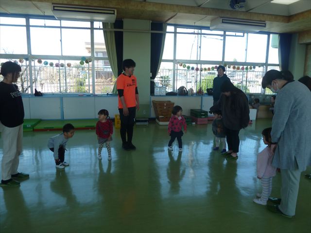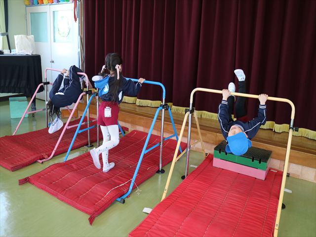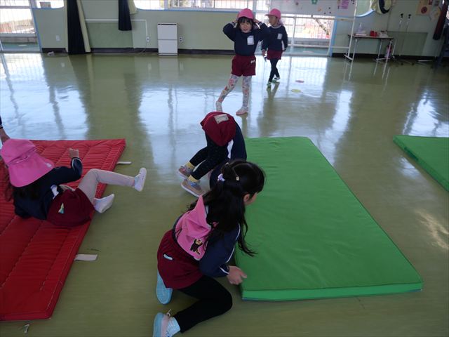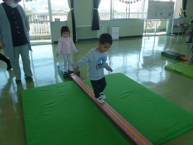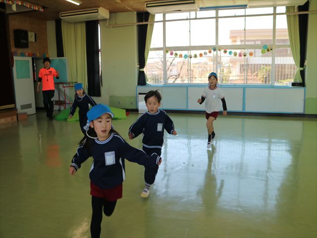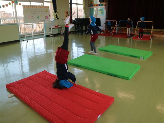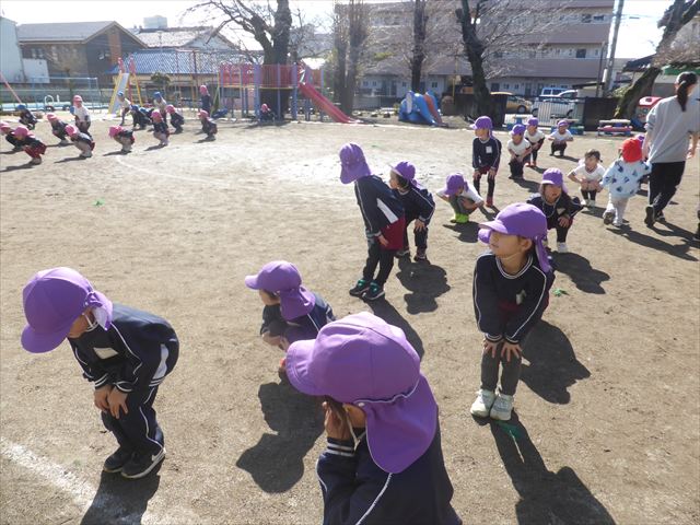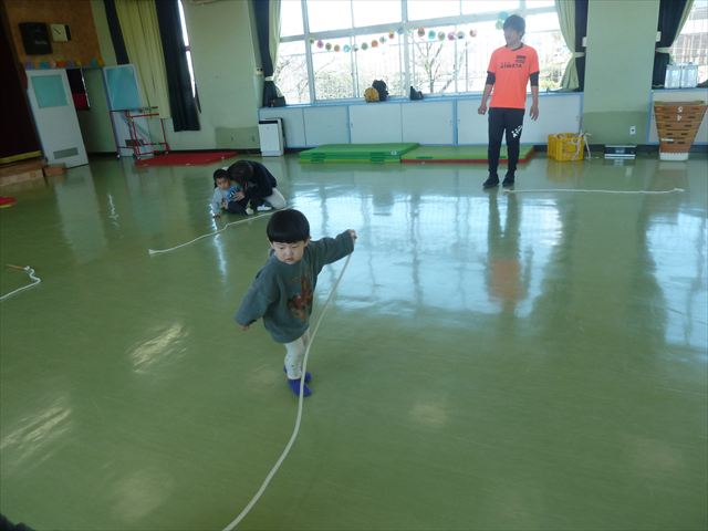 今日は、年中最後の運動教室でした。実態調査の用紙を見ながらもう少しで出来るようになる種目を挑戦したり、自分で取り組みたい種目をやってみたり、主体的に運動遊びをしました。この一年でたくさんの成果が見られました!鈴木先生色々ありがとうございました。年長になっても更に色々な事が出来るように頑張ります!