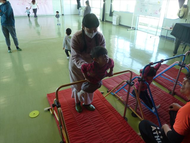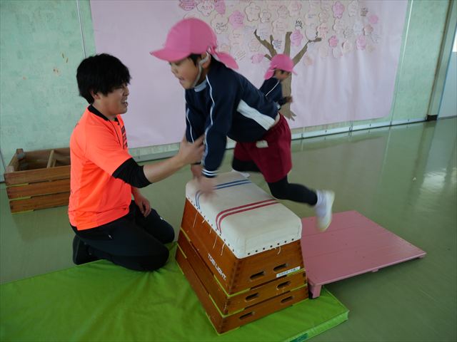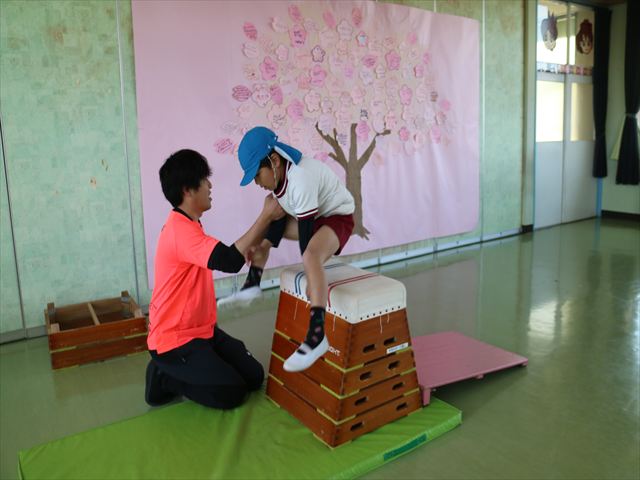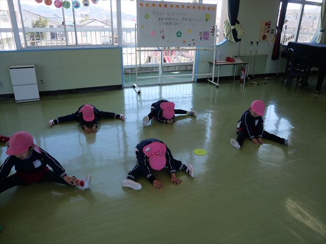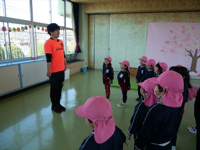 運動教室では実態調査のまだ出来ていないものを自分で見つけて練習しました!何度もチャレンジしたら今日で出来るようになった子もいて、みんなで喜びながら取り組めました!また今日が最後の運動教室でした!鈴木先生から小学校では体育の授業があるから頑張ってね!友達をたくさん作ってね!とお話をしてもらいました。鈴木先生ありがとうございました!