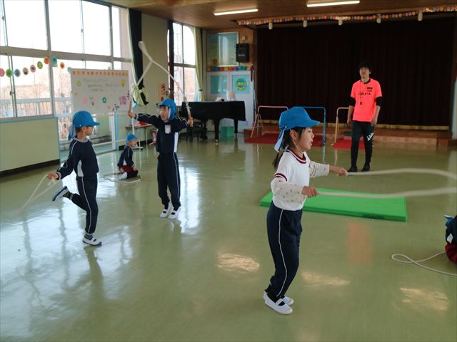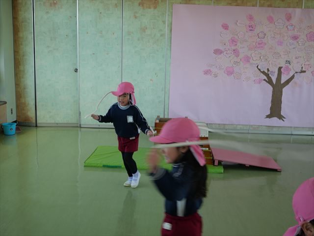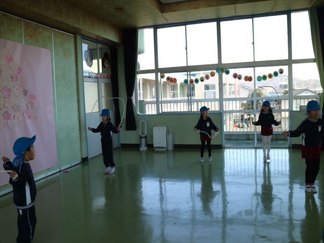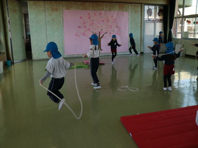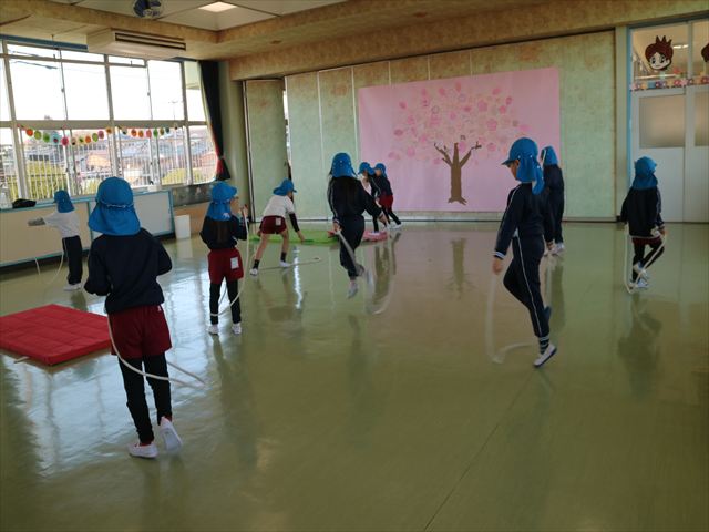 入室前に体育の時間でなわとびをしました。練習を重ねてきて以前よりもたくさん跳べる子が増えてきました☆※写真がなくて申し訳ありませんm(__)m