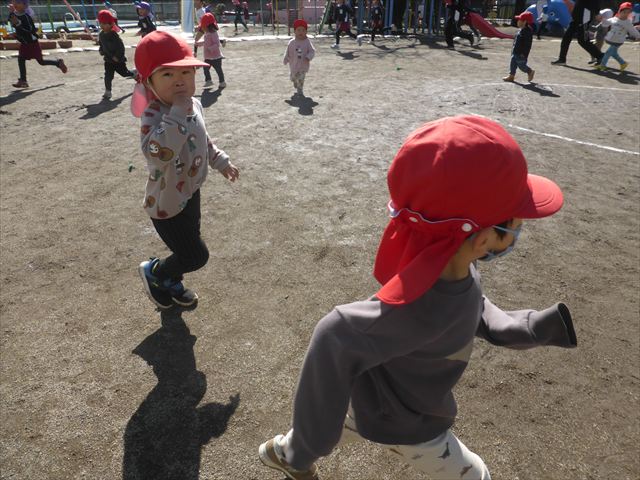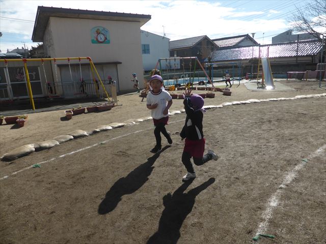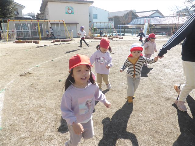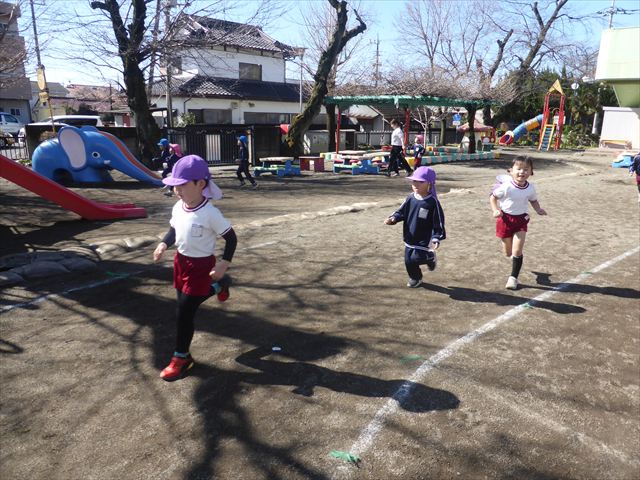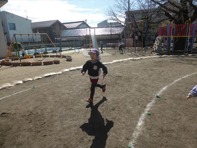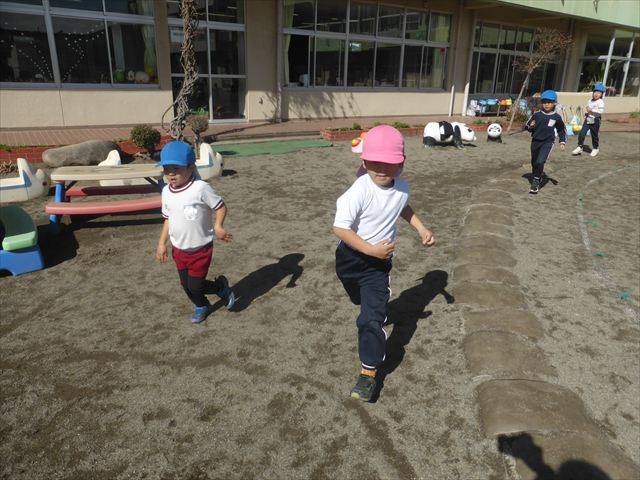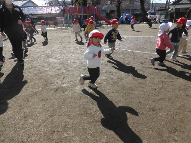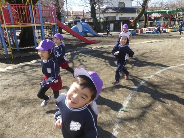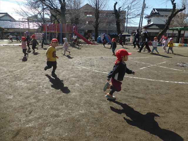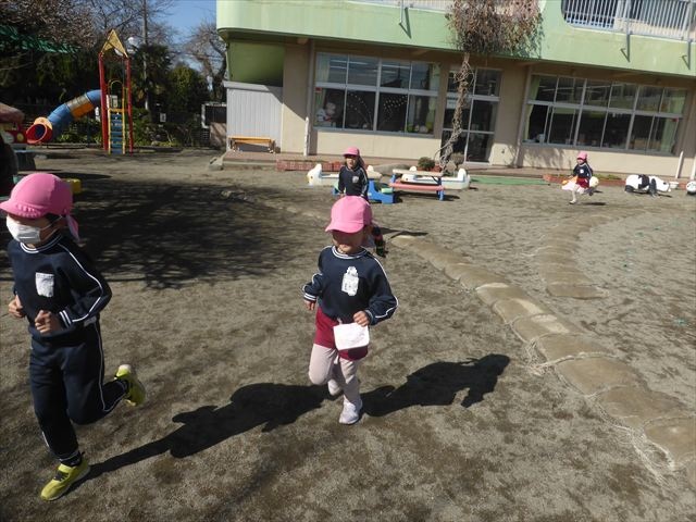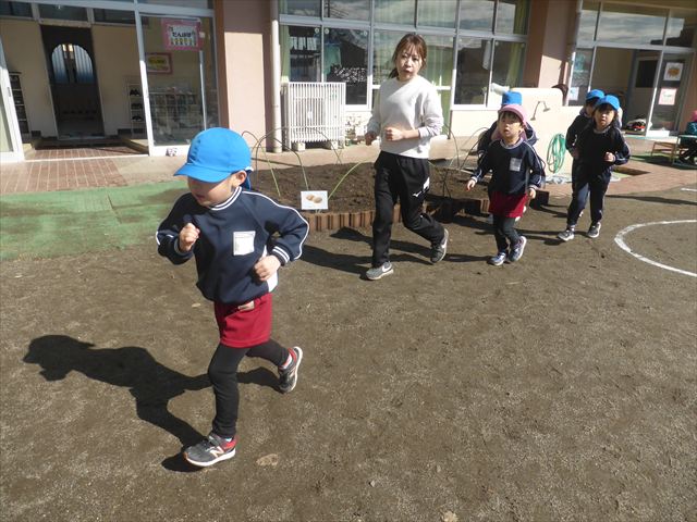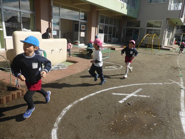 今日もマラソンを頑張りました!昨日と違い暖かい天気だったので、半袖になって走る子もいるくらい、子どもたちは元気いっぱいです☆