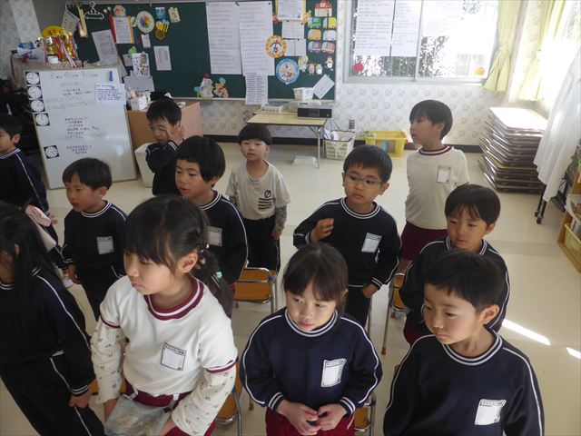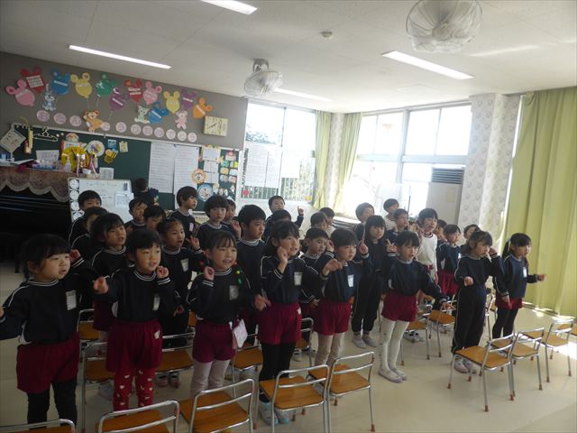 午後は卒園式の練習をしました。今日は入場の仕方とお別れの言葉・歌の練習をしました。まだまだ覚えることがたくさんありますが、みんなで力を合わせて頑張りたいと思います!
