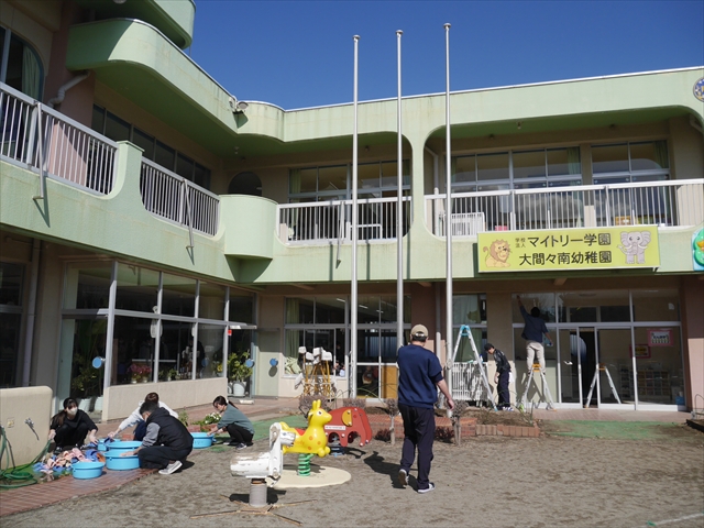 今日は、青空の下気持ちよい暖かさでしたが、そうした中マイトリーのために年長さん・年少さんの保護者の皆さんと年中さん・たんぽぽさんの有志の保護者の皆さんがたくさん参加していただき、「PTA奉仕作業」が朝8時30分から行われました。(*^-^*) 今日は例年より大分少ない参加者数で残念だったのですが、そうした忙しい中、そして好天気のお楽しみの土曜日にもかかわらず、マイトリー幼稚園のためにご参加いただいた30名の保護者の皆さん、本当にありがとうございました!m(_ _)m 厚く感謝申し上げます。<(_ _)>  また、今回参加できなかった方は、来年度是非とも参加・ご協力をよろしくお願い申し上げます。子どもたちのより良い環境整備には保護者の皆さんのご協力が不可欠です。皆さんが園へいろいろご協力してくれることが、職員も子どもたちのより良い教育を推進していく上で、とても励みになります。今後も何卒様々な行事へのご協力をよろしくお願い申し上げます!m(_ _)m