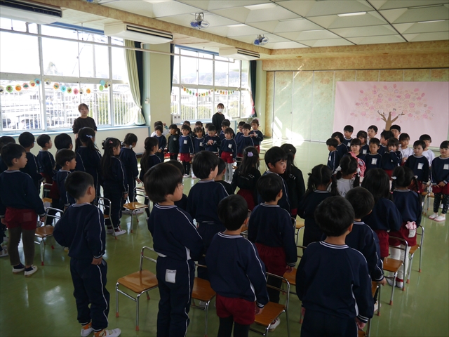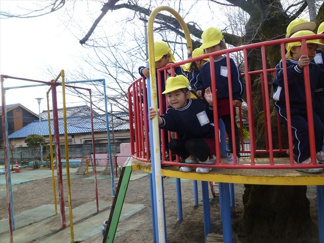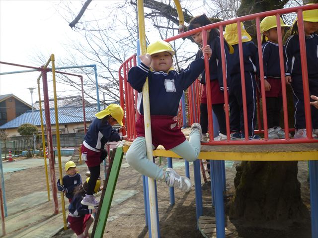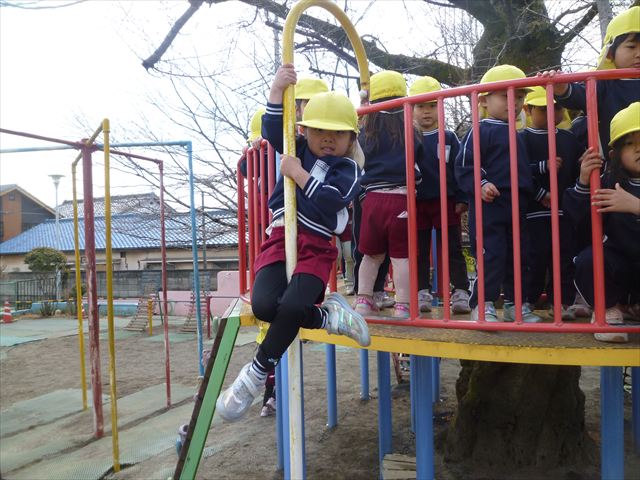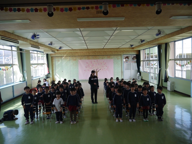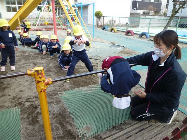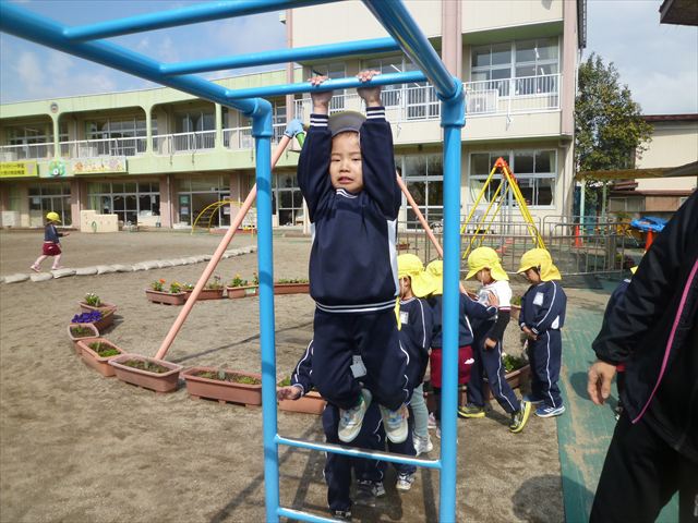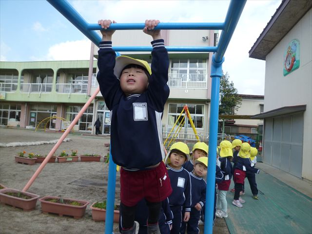 本園は体育面の重点施策として「アクティブライフプロジェクト(体力向上推進事業)」を実施しています。子どもたちの将来にわたって活動していく力や多様な動きの獲得、体力・運動能力の基礎を培うことを目的として年間を通して実施しています。毎週のように運動教室や担任指導の「体育の時間」を実施しています。また、ほぼ毎日朝の業前活動として、体操・鉄棒・雲梯・ボール投げ・なわとびなどの「サーキットトレーニング1」や 走力・跳力・バランス力・調整力の向上のための 「サーキットトレーニング2」や「マラソン」などを実施しています。さらに身体の調整力や柔軟性、バランス力、体幹等を伸ばすため、外部講師に依頼して年間を通して「ダンス教室(ヒップホップ・チアダンス)」「スポーツリズムトレーニング教室」「ボール投げ教室」「ドッジボール教室」「ボッチャ教室」「なわとび教室」なども実施しています。今日は、その総まとめの一つとして年長さん、年中さんによる器械運動の「体育発表会」を実施しました!(^_^)b