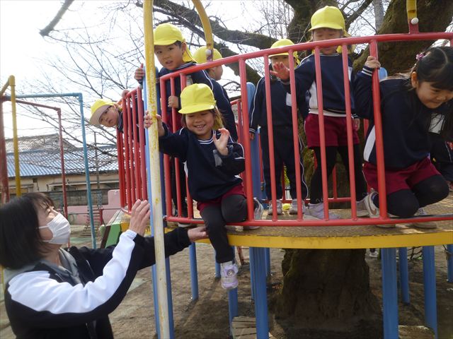 年長さん、年中さん全員による「跳び箱」運動と「鉄棒」運動の発表と、年長さん・年中さんの中で模範的な演技のできる子どもたちの代表発表も行いました!代表の子どもたちの中には、 「跳び箱」の縦6段や横6段を跳べたり、 鉄棒では「伸膝腕立て後転」「空中連続逆上がり」ができたり、小学生中高学年並みのことができる子もいました。とにかく年長さんも年中さんも、全員この1年間でとても体力・運動能力・運動技能が向上しました!ホントに立派です。えらい!\(^_^)/