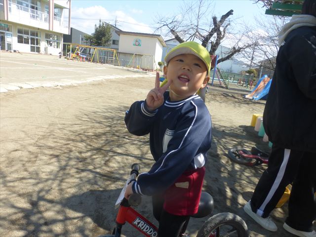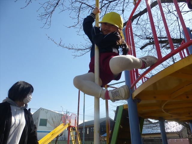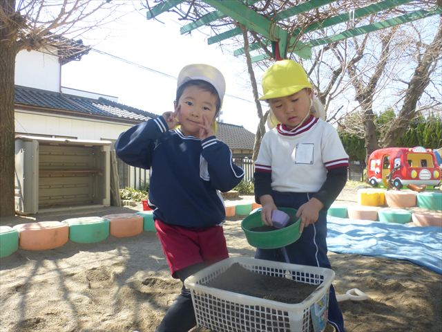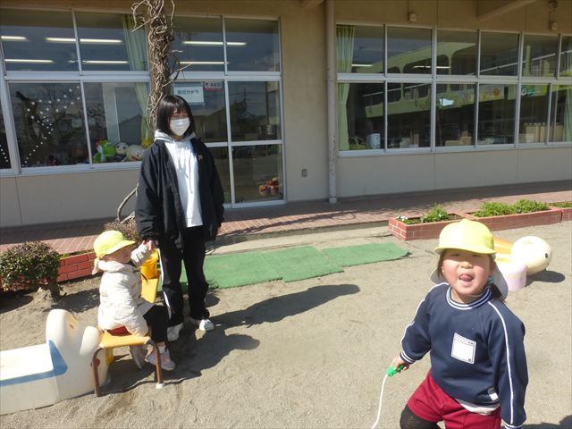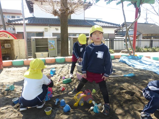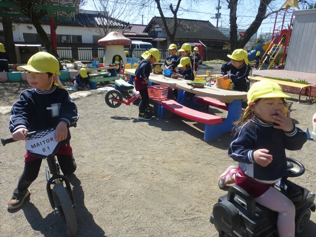 戸外遊び☆年少☆ 2026年3月12日 マイトリー学園大間々南幼稚園 コメントする 今日はとってもいい天気だったので、午前中園庭で好きな遊びを楽しみました。お砂遊びをしたり、滑り台を滑ったり、お弁当バスに乗ってお出かけごっこをしたりとても楽しそうに遊んでいました。
