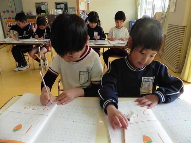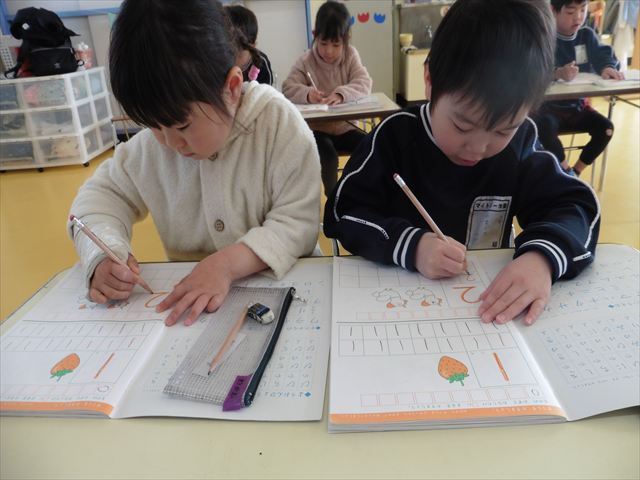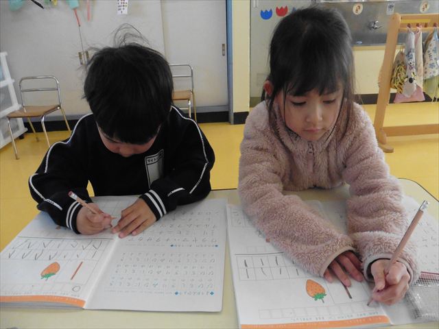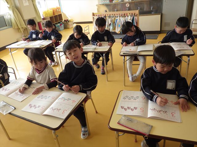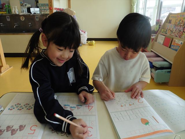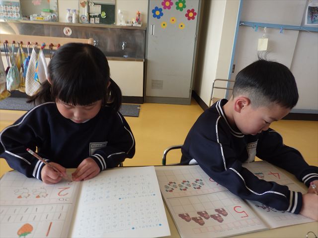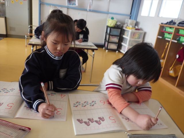 もじあそびは、1~6までの数字を練習しました。一生懸命取り組んでいました!
