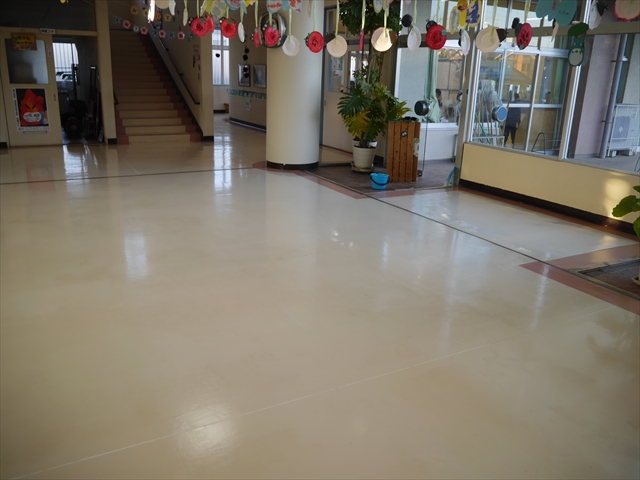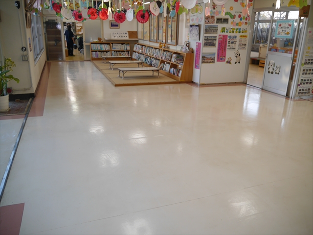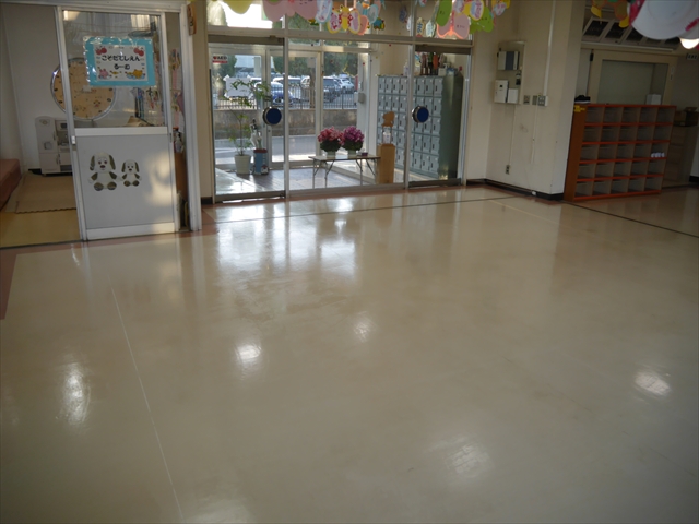 来週は卒園式、そして4月に入ると入園・入所式と、大きな儀式行事が立て続きであります。綺麗な環境で気持ちよく卒園生、入園・入所生、保護者の皆さんを迎えたいため、今日は職員作業で「玄関・玄関ホール」「遊戯室前の廊下」フロアのポリッシャーかけ、ワックス塗りをしました。とても綺麗になったので、気持ち良く実施できると思います!(*^_^*) (^_^)v