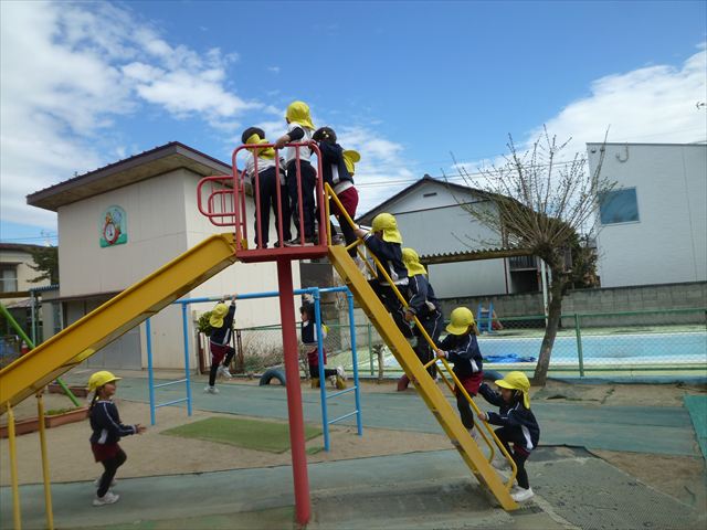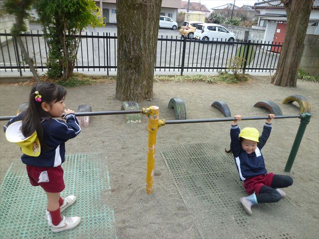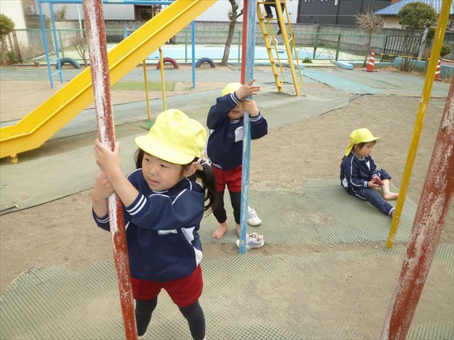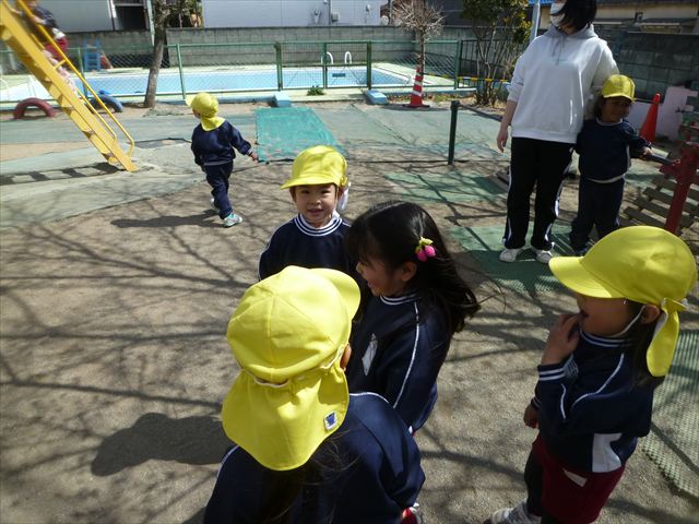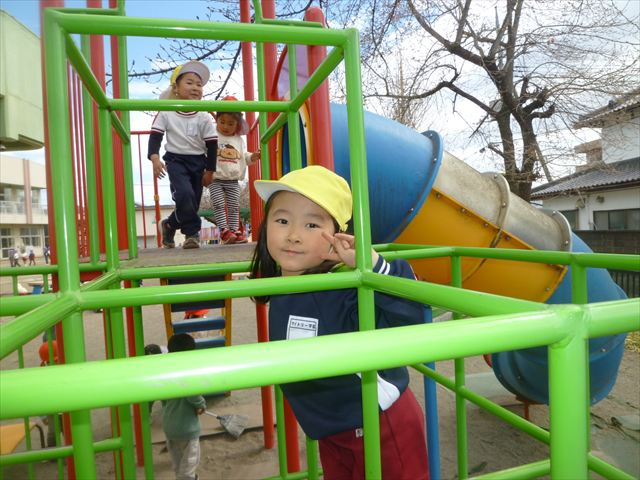 戸外遊び☆年少☆ 2026年3月19日 マイトリー学園大間々南幼稚園 コメントする 今日の午前中は、たんぽぽぐみのお友だちと戸外で遊びました。園庭のトラック内では年中さんがドッチボール教室をやっていたので邪魔にならないように、砂場や固定遊具で遊びました。