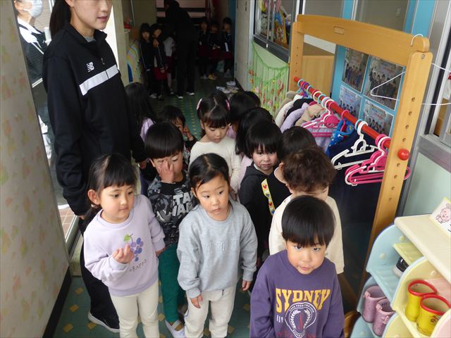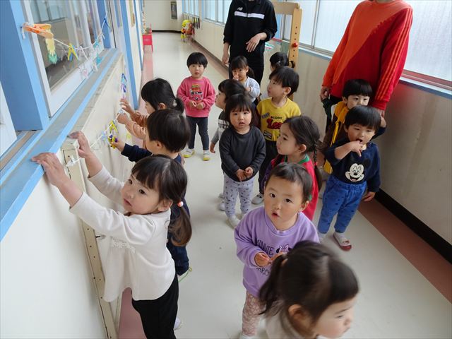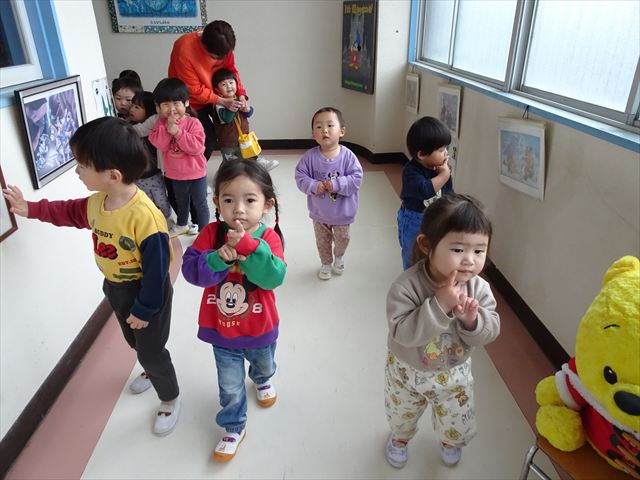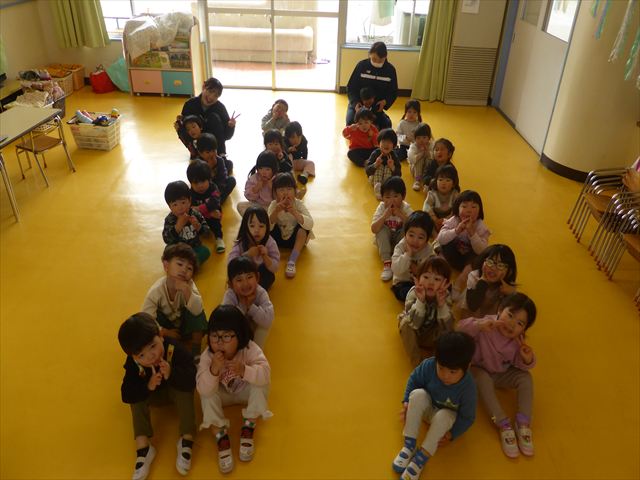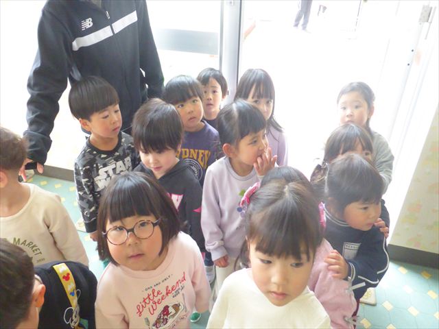 早いもので、今日でたんぽぽ組はおしまいです。 この一年で、体操座りもこんなに上手に出来るようになりました☆ 今日は、新しいクラスを発表して、うさぎ組・りす組のメンバーをみんなで確認しました。そしてみんなで新しいお部屋までお散歩。制服を着てそのお部屋にいるみんなを想像し、先生たちもとても楽しみになりました(^^)