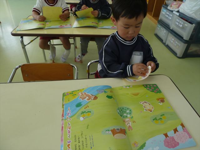 今日は、花まつりに参加しました。内容は花まつりの記事をご覧ください。その後は、身体測定をしました。身体測定の後は、月刊誌の読み聞かせを聞いました(^^)/よく聞くことができました。最後にシーツを貼って遊びました(^^♪お友だちと会話をしながら楽しそうにシール貼りをしました。