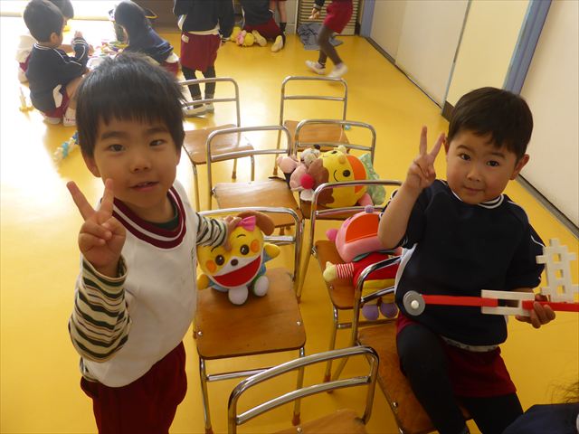 こいのぼり作り&室内遊び☆年少☆ 2026年4月15日 マイトリー学園大間々南幼稚園 コメントする 今日は、初めての製作!!「こいのぼり作り」をしました。初めてのりを使いました。お話をよく聞いて上手に使う事が出来ました!(^^)!のりで紙を貼って、クレパスで目を描いて丸を黄色で塗りました。かわいいこいのぼりが出来ました!(^^)!GW前に持ち帰りますのでお楽しみに~。午後は、室内で遊びました。笑顔もたくさん見られました。