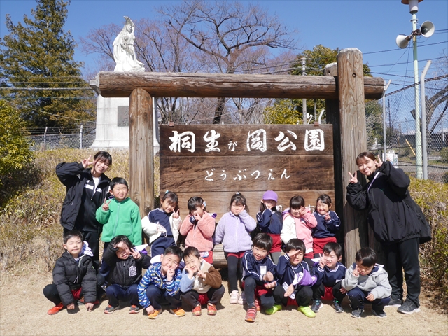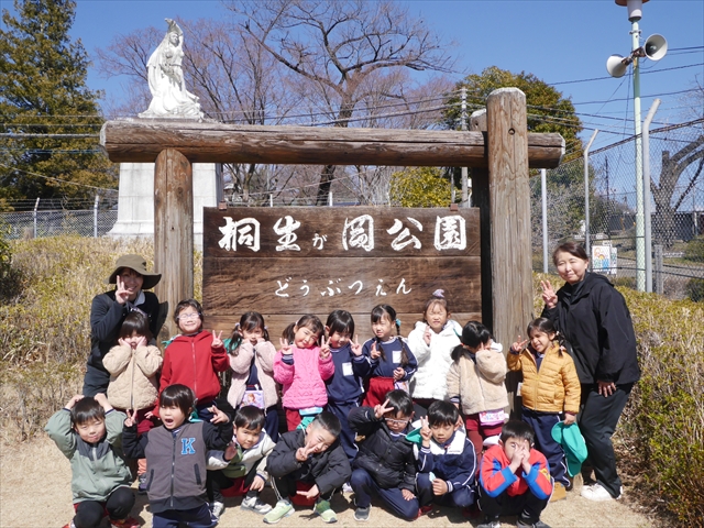 日差しが春うららの気持ちよい天気なので、桐生が岡公園はたくさんの保育園や観光客が来ており、駐車場も満車状態でした。バス2台分だけ空いていたので、何とか駐車することができましたが、もう少し遅れたら遠い駐車場になるところでした。子どもたちは足取りも軽く、うきうきしながら友達や先生と一緒に、いろいろな動物たちを楽しみながら見学していました。桐生が岡公園も年々園内の整備が進み、様々な動物舎や公衆トイレや東屋などみんな新しくなり、綺麗な動物園になったので子どもたちもより楽しめました!(^_^)b
