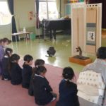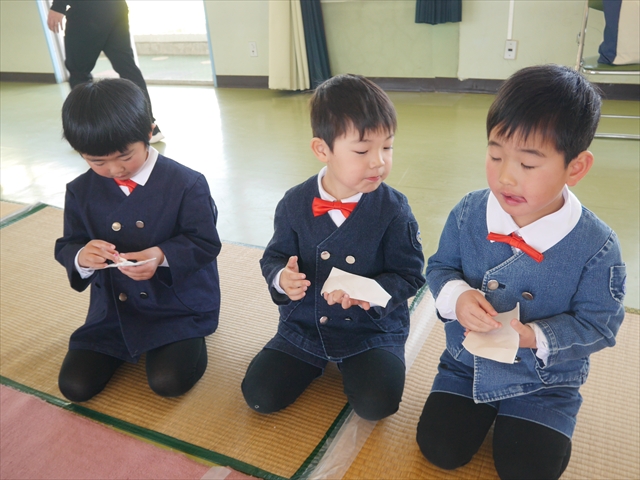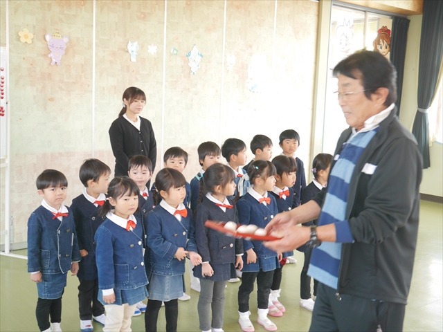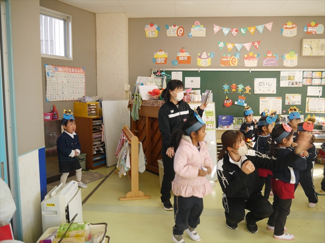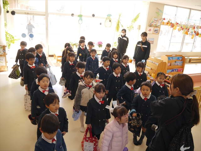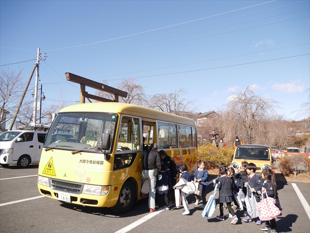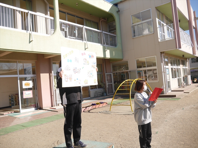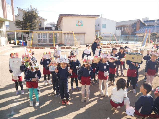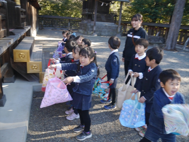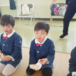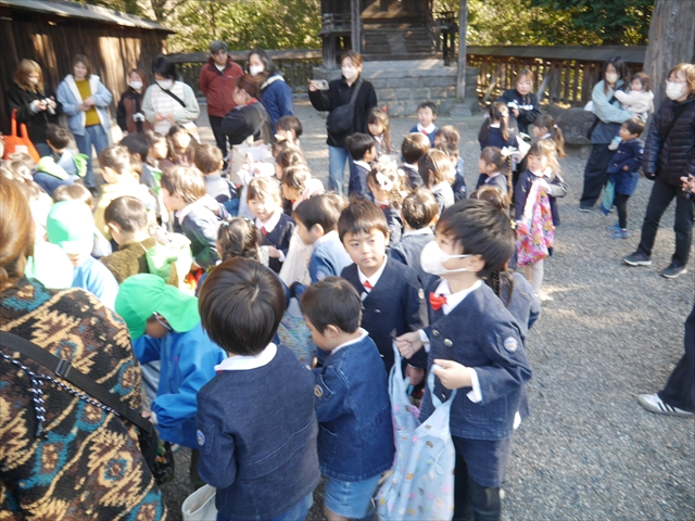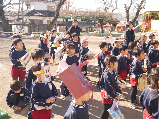 ※明日は神明宮節分祭に参加します。制服登園です。送迎の方は9時までに登園してください。園からバスで出発して、10:00から豆まき開始となります。見学されたい方は直接神明宮に来ていただき、一緒にお菓子を取って参加してください。またお菓子を取る用に大きい手提げやバックがあれば持たせてください。よろしくお願いいたします。