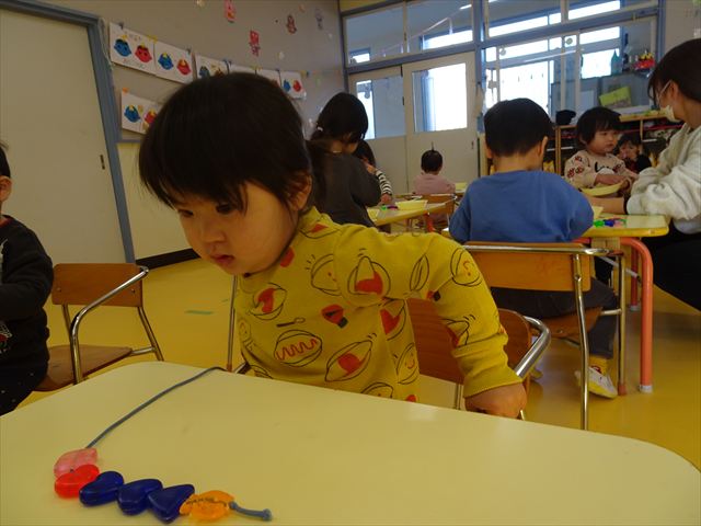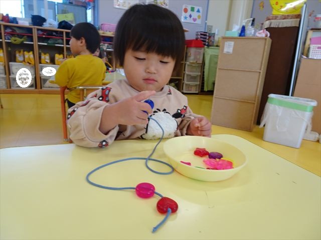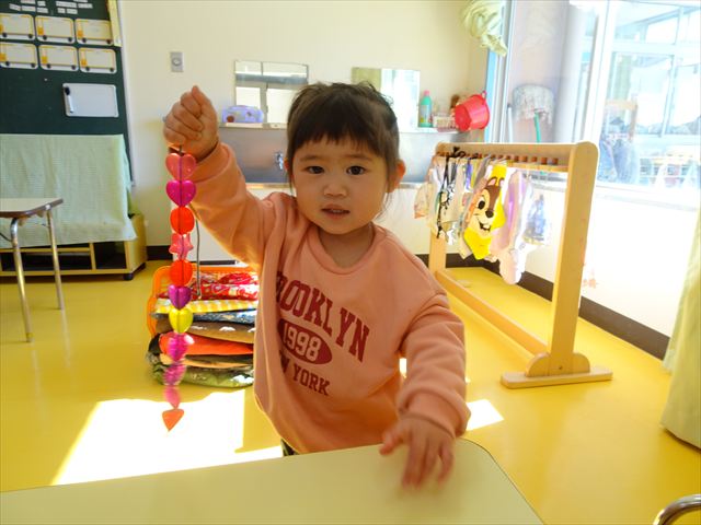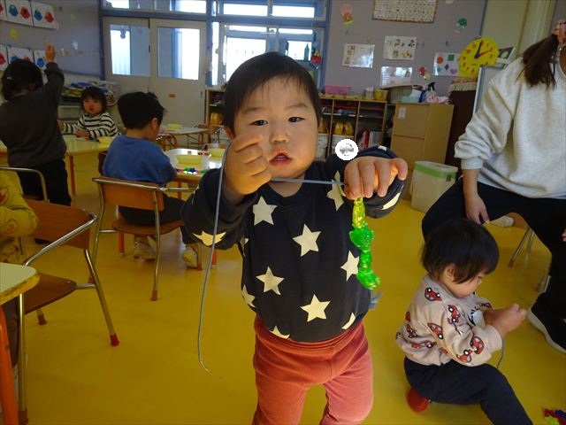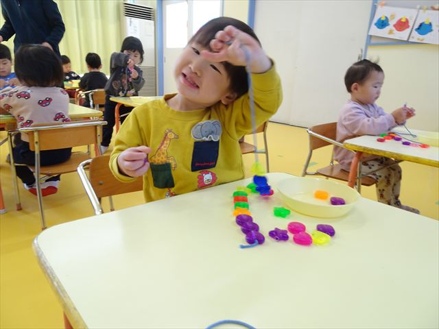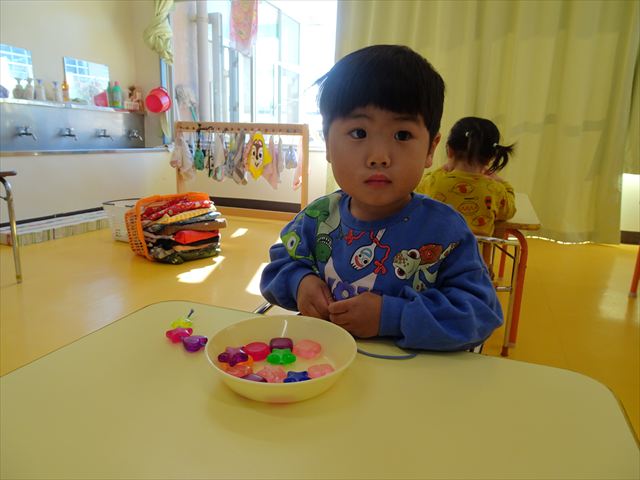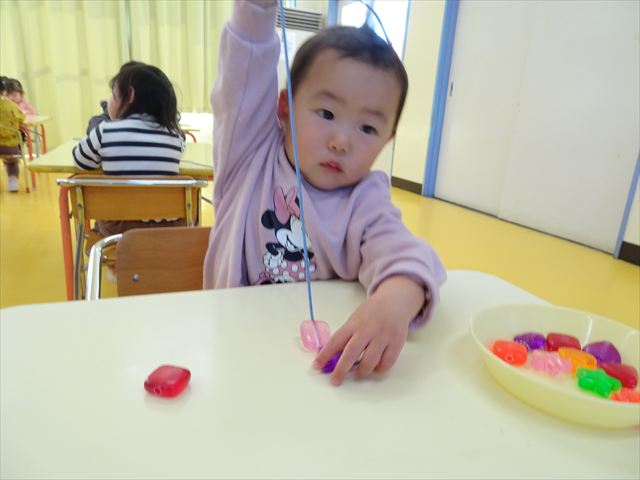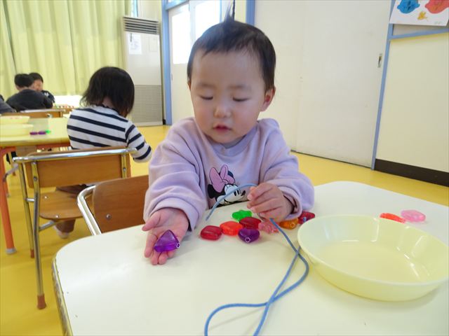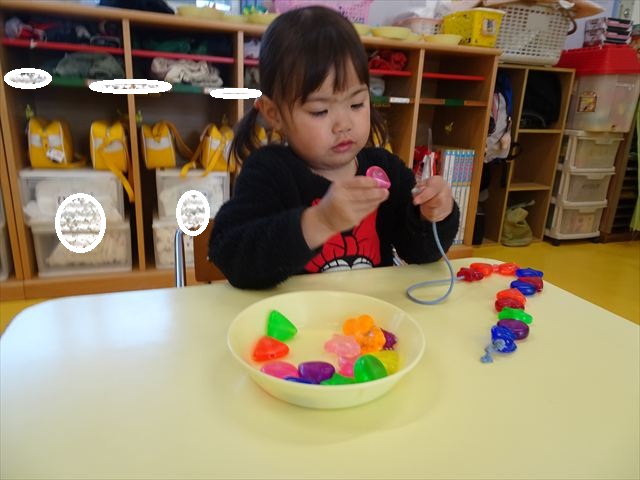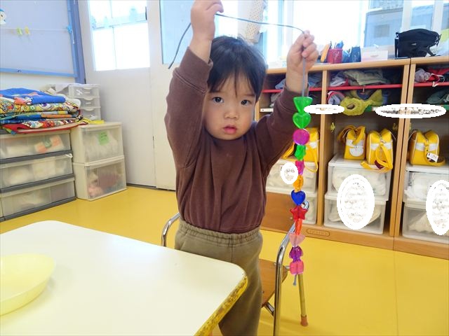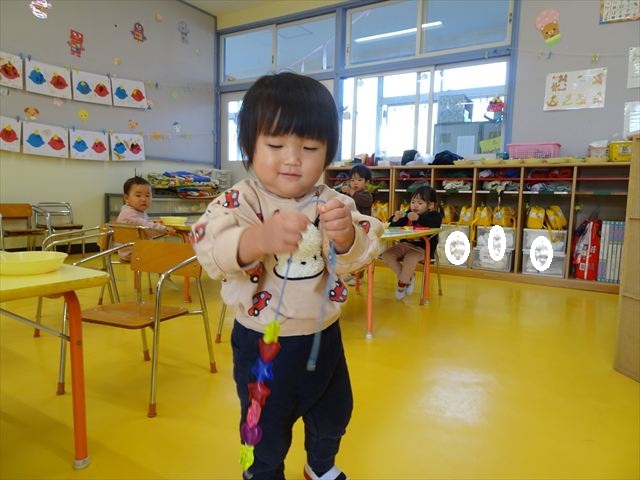 ホール飾り作り・リトミック(満3)&紐通し遊び(満2)☆たんぽぽ☆