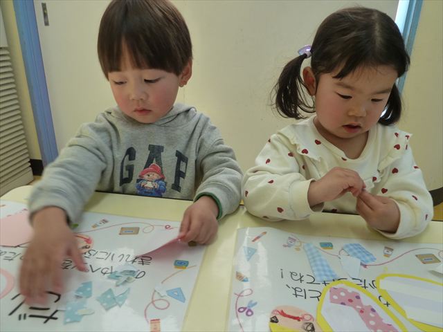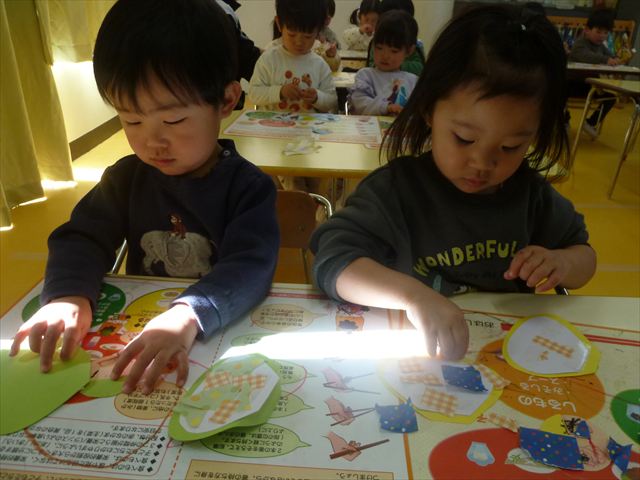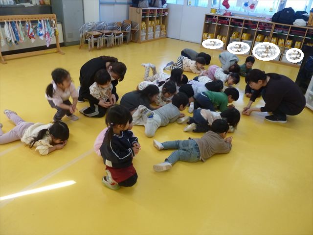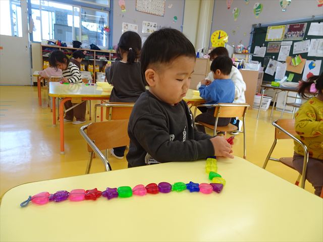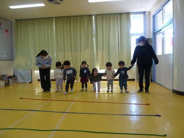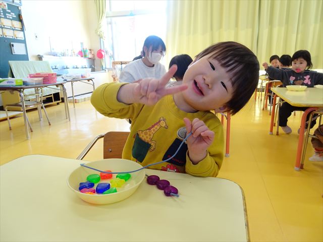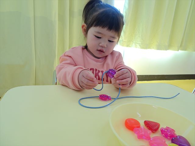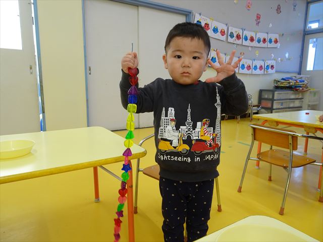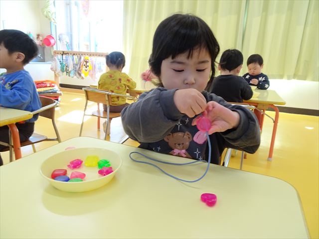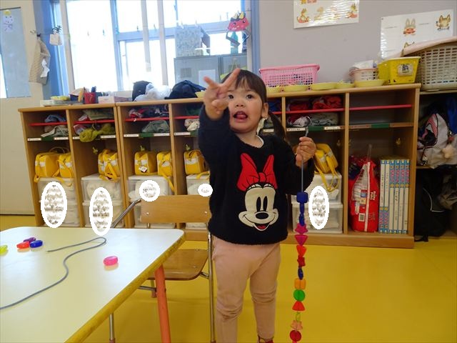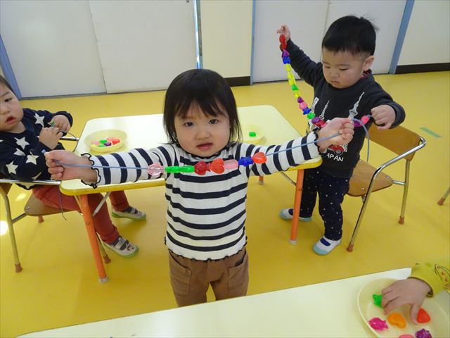 ホール飾り作り・リトミック(満3)&紐通し遊び(満2)☆たんぽぽ☆