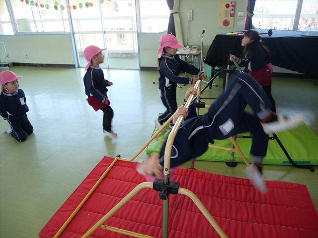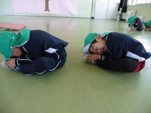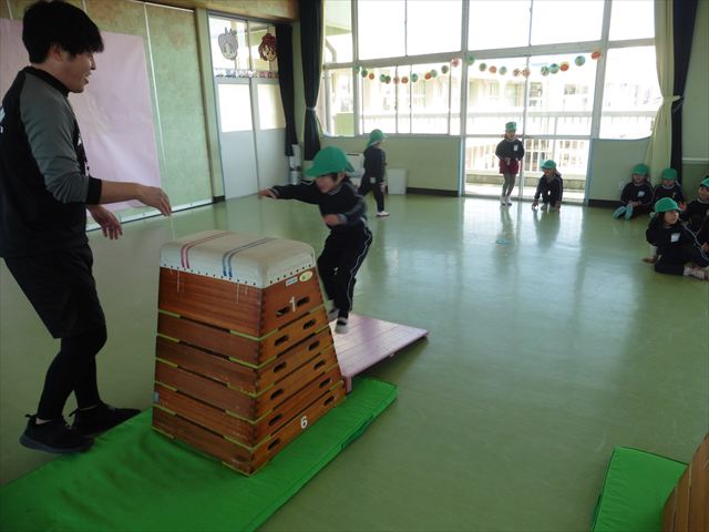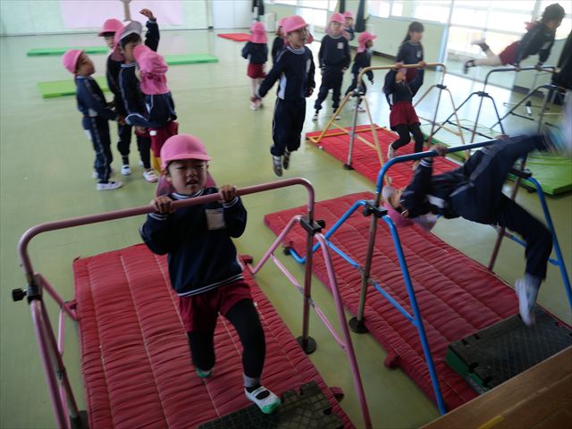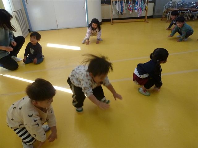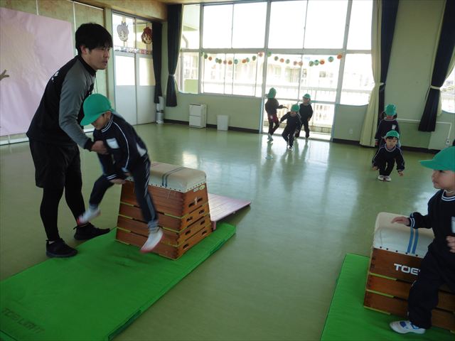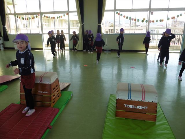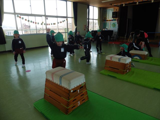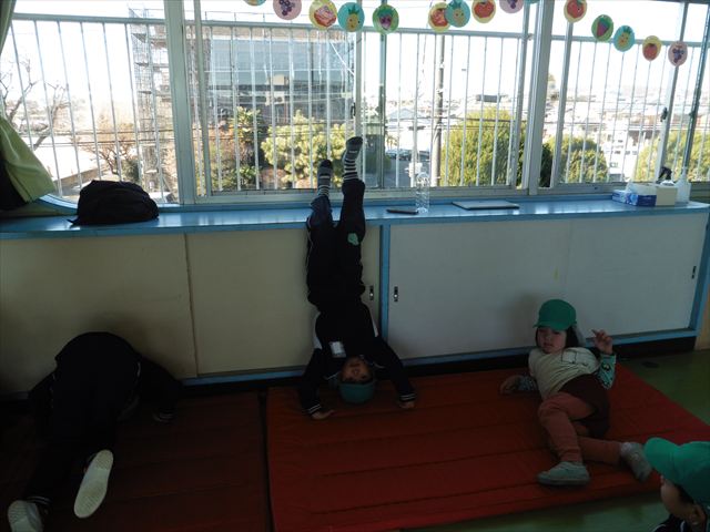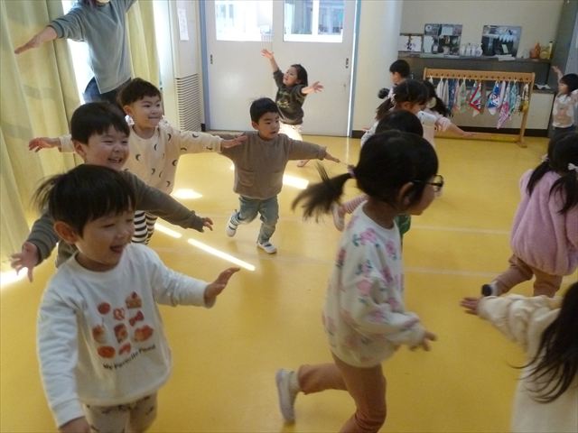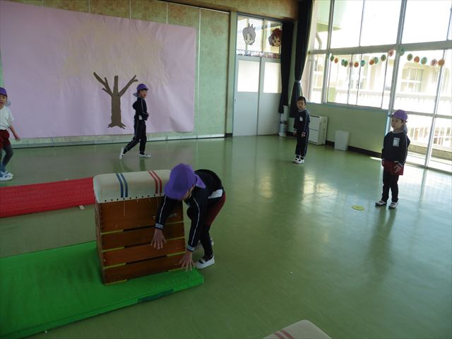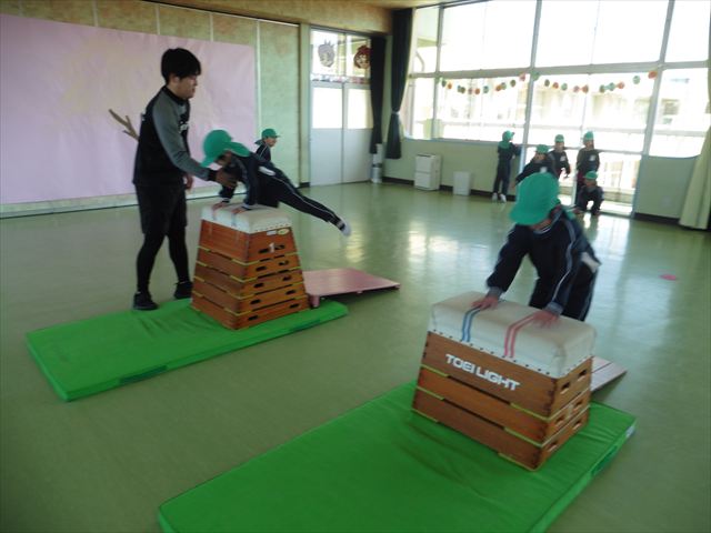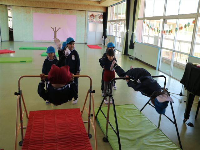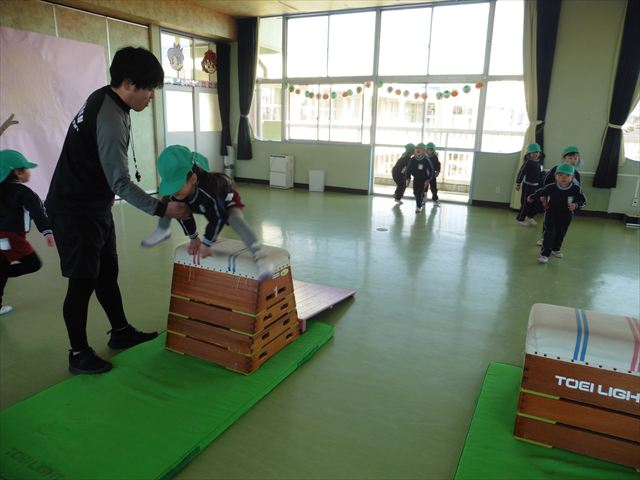 今日の運動は跳び箱と側転、倒立の練習をしました。跳び箱は1段以上跳べる子も増え、難しい側転もみんな真剣に取り組んでいて、コツをつかみ練習している姿も見られました。倒立では頭をマットにつけづにできる子が増え2学期からレベルアップした子どもたちの姿が見られました!頑張った後はみんなで鬼ごっこ☆とても楽しんでいました!