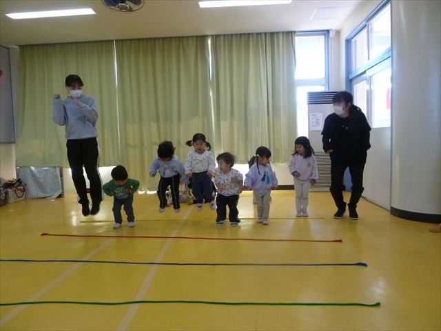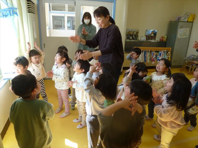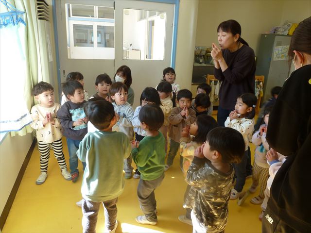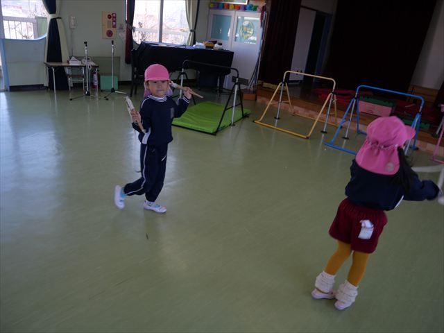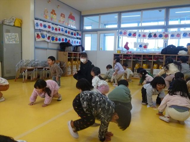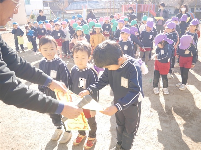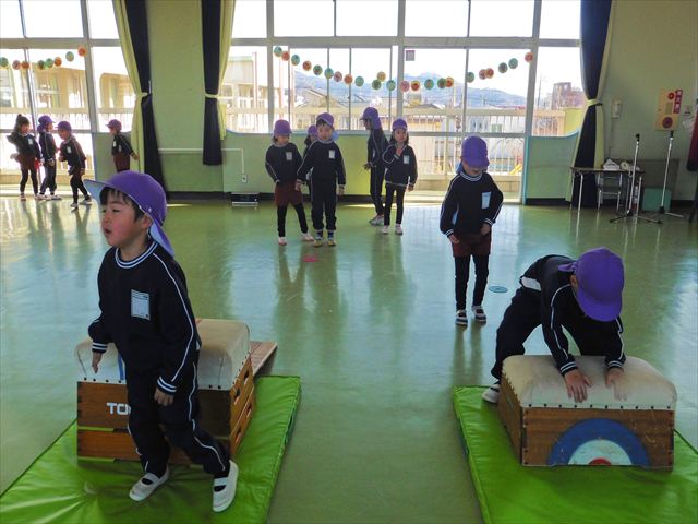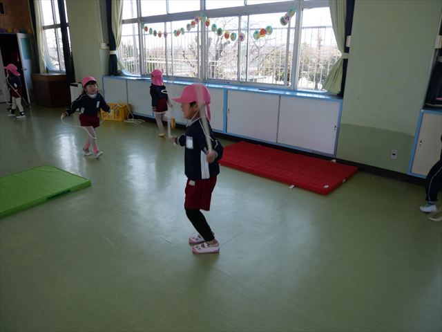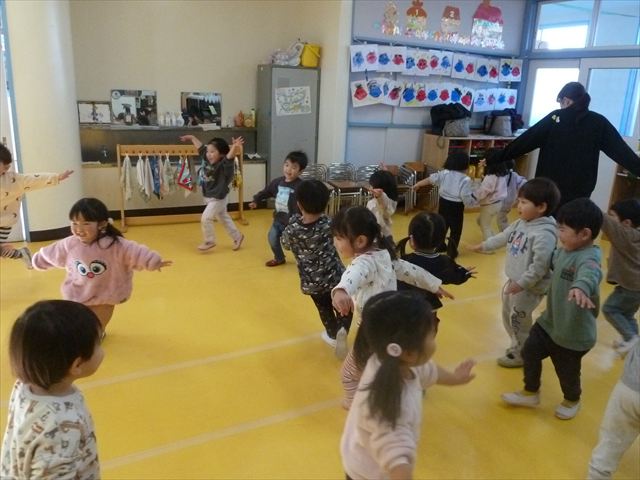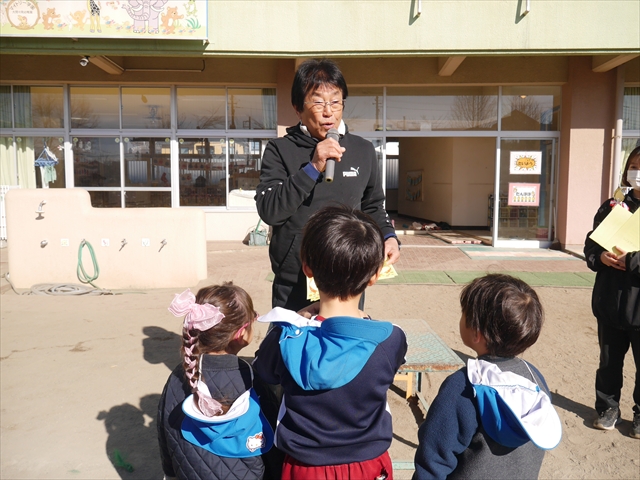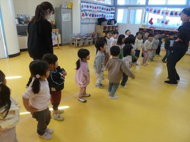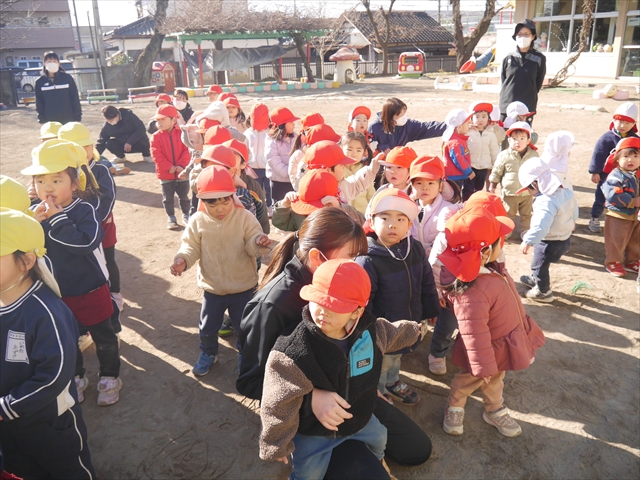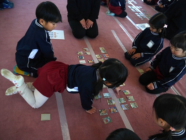年中さんたちは、「上毛かるた」を年少時から練習してきており、今年度も昨年12月からずっと練習してきました。なので、得意になった子は素早く札を取ることができるようになっており、大分成長がみれています。しかし、あまり得意でない子、取れない子もいるのですが、団体戦なので丁度バランスが取れたチームになっているようで、接戦・熱戦が見られました。今日は、年長組と同じように遊戯室に絨毯を敷き、ルールも極力群馬県子ども会方式に近づけ、審判は先生、読み手は園長先生が行い、本格的に実施しました。年中さんたちは、過日年長さんの「上毛かるた大会」を見学しているので、みんなしっかり活動し、スムーズに大会を運営することができました。とにかく子どもたち一人一人が自分の持てる力を存分に発揮してチームで協力し合い、精一杯頑張りました。本当にえらかったです。序盤戦は、「おかめきけ」「すもの」を揃えた大差の試合もあったのですが、接戦も見られました。特に、決勝戦は さくら組、つつじ組の代表チームの戦いとなり、熱い戦いが展開されました。 同点で「つ」勝ちで勝負が決まるという大接戦でとても盛り上がりました。「つ」勝ちで優勝を勝ち取ったのは、つつじ組の「りこし」チームでした。「りこし」チームは大喜びでしたが、決勝で負けしまったさくら組の「かま」チームや途中で敗退してしまったチームの中には、かなしさ、くやしさで涙したチームもおりました。しかし、残念ですがとにかく勝負は時の運もあり、また時に冷酷でもあります。勝って喜び、負けて悔しい思いをし、しかしこれも良い体験です。負けた悔しさを味わったその経験は、きっと次に役立ちます。年中さんたちは、また来年年長になってからも「上毛かるた大会」がありますので、是非その悔しさを来年晴らしてほしいと思います!そうした中、勝負強く、運も味方につけ、激戦を勝ち抜き、栄冠を手に入れた子どもたちは、つつじ組のりくくん、こうくん、しゅくんたちの「りこし」チームでした。本当によく頑張りました。おめでとう!ヘ(^o^)/ \(^^)/ そして惜しくも敗れて準優勝だったのは、さくら組のかえくん、まゆちゃんの「かま」チームでした。そして、残念ながら準決勝で敗れ3位決定戦を勝ち抜き第3位になったのは、つつじ組のまなくん、にこちゃん、あさくんの「まにあ」チームでした。おめでとう!\(^_^)/ 時間がなかったので今日は簡単に表彰し、正式の表彰式は、年長組の表彰式と一緒に明日2月4日(水)の朝礼で行う予定です。(*^_^*)