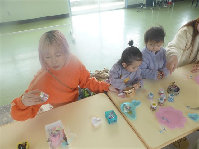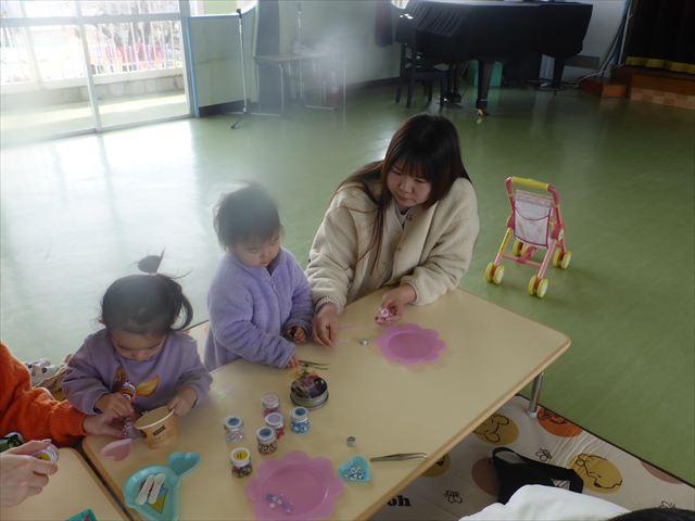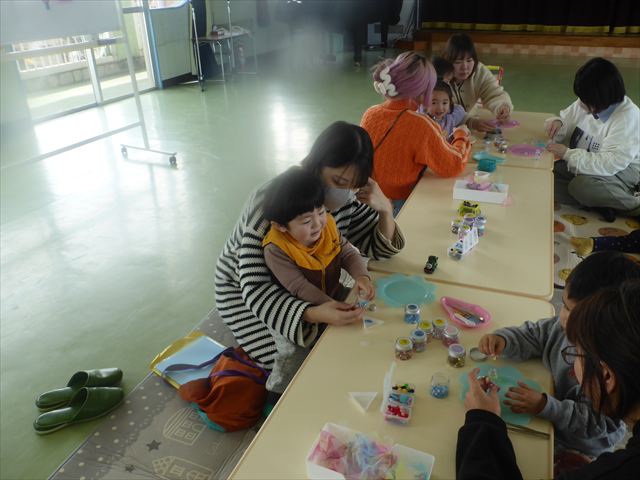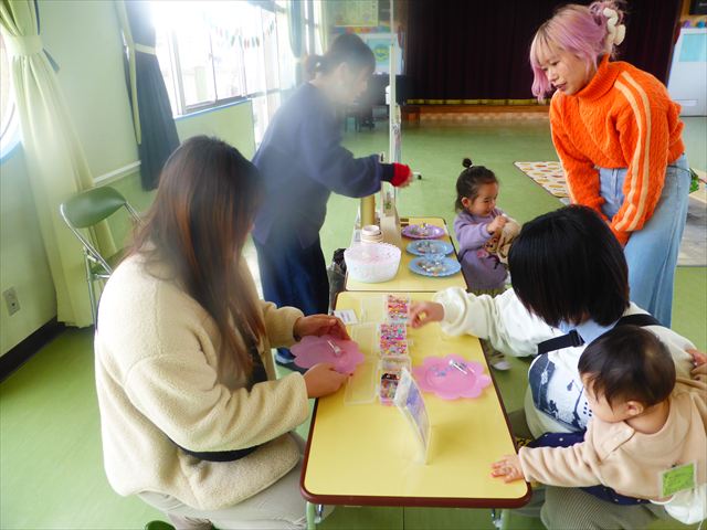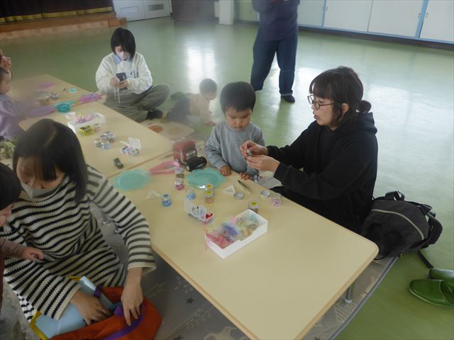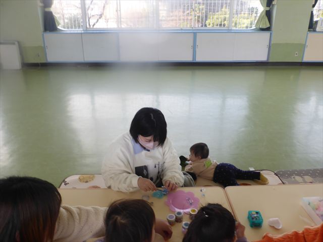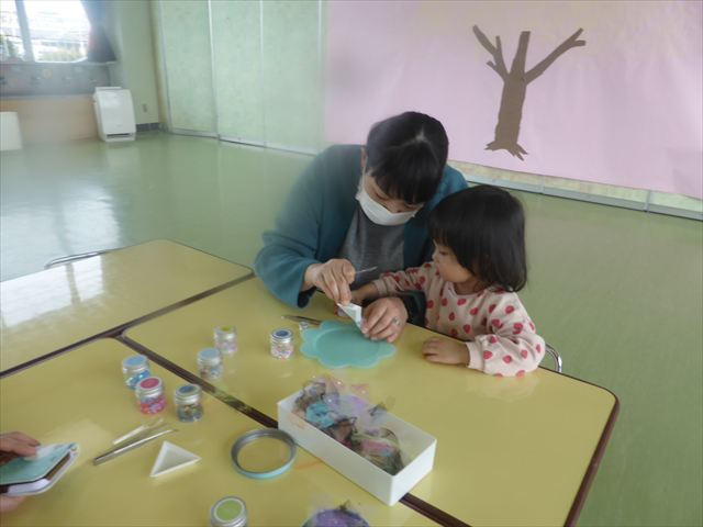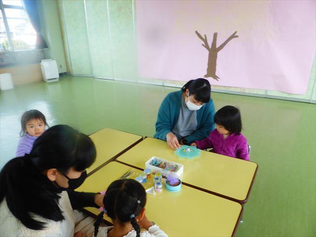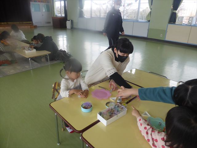 9日(月)は卒園記念写真撮影があります。制服・ベレー帽・名札・白靴下・ネクタイを忘れずに着用してきてください。よろしくお願いいたします。今日のさくらんぼクラブは「親子でハンドメイドアクセサリーを作ろう!」でした(*^^*)