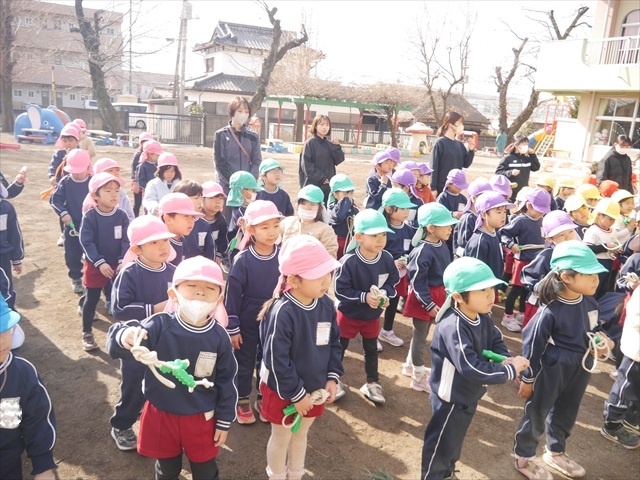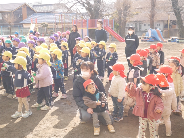 昨年末は「インフルエンザ(A型)」が流行り大変でしたが、年明けは落ち着いていました。しかし、このところ今度は「インフルエンザ(B型)が」が流行っている状況のようです。近隣市町村の小中学校でも「インフルエンザ」による学級閉鎖や学年閉鎖の学校もあるようです。本園にも近隣小中学校の兄弟姉妹関係のお子さんもおりますし、今後感染が広がる可能性もあります。本園は保護者の皆さんのご協力のおかげで、インフルエンザ感染はまだ単発ですが、現在徐々に広がりつつあるような感じです。今日は午後4時段階で、年長うみ組に1名、年中さくら組に4名、年少うさぎ組に1名、たんぽぽA組に1名、計7名感染者が出てしまいました。しかし、そのうち4名は本日で完治する予定で、3名が感染中ですが、来週はどうなるか分かりません。これから、進級・進学に向けての学びや子どもたちが楽しみにしている行事や保育参観等が目白押しにありますので、子どもたちには何とか全員参加させてあげたいと思います。園の方でも、除菌、換気、うがい、手洗い等のインフルエンザ感染予防対策を施していきたいと思いますが、ご家庭でもお子さんの感染予防対策、健康管理をよろしくお願いいたします。m(_ _)m