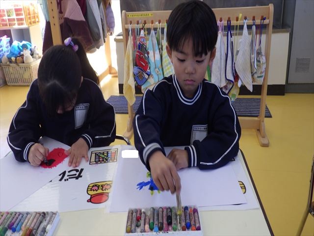 鬼の絵を描く&英語教室&お知らせ☆年長☆