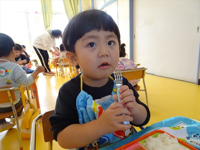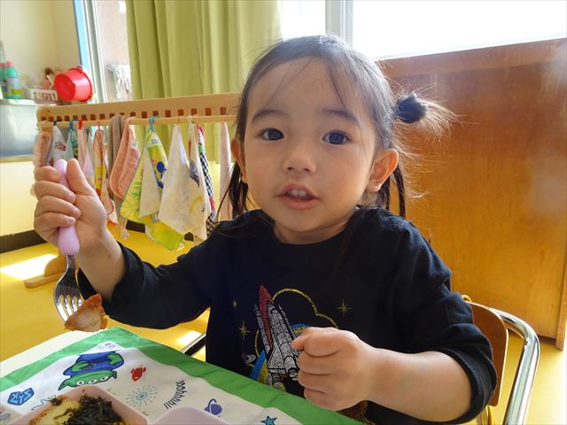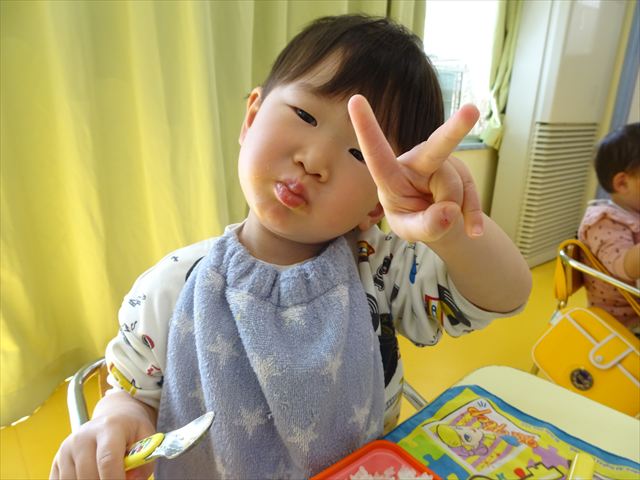 新しくお友だちが増えて、総勢15名になった満2歳児さんです!そんな満2歳児さんたちの、給食の様子をお届けします(