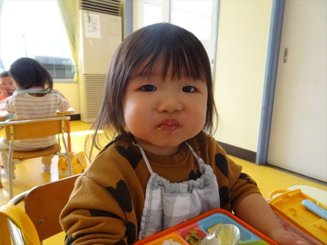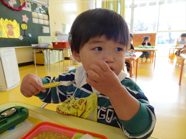 「特別メニュー」の給食ですから、さらに美味しさ倍増でした。年長さんへプレゼントをしたり、ゲームをしたり、催しやレクリエーションを行いながらの「会食」でしたから、みんな顔をほころばせて、美味しく楽しくいただきました!よかったね!(