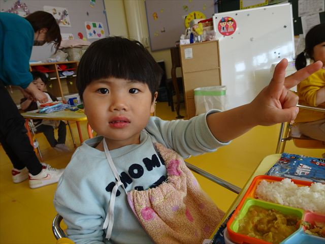 残念ながら、遠足が延期になってしまったのでお遊戯室でみんなで手作りお弁当を食べました!今日も愛情たっぷりのお弁当を食べて子どもたちはとても嬉しそうでした♡