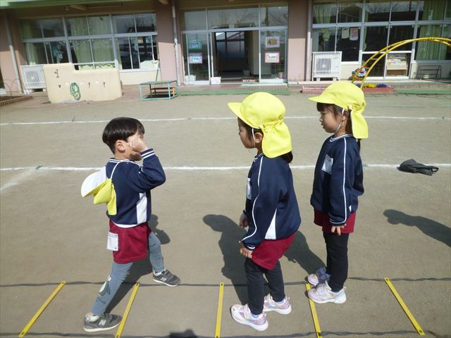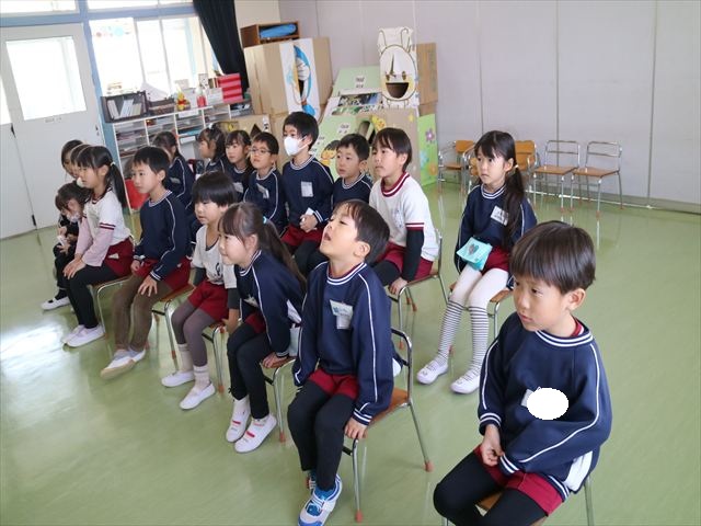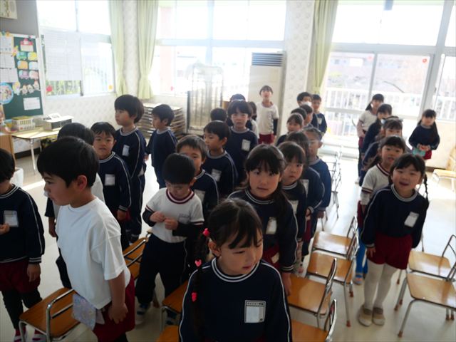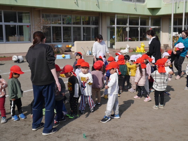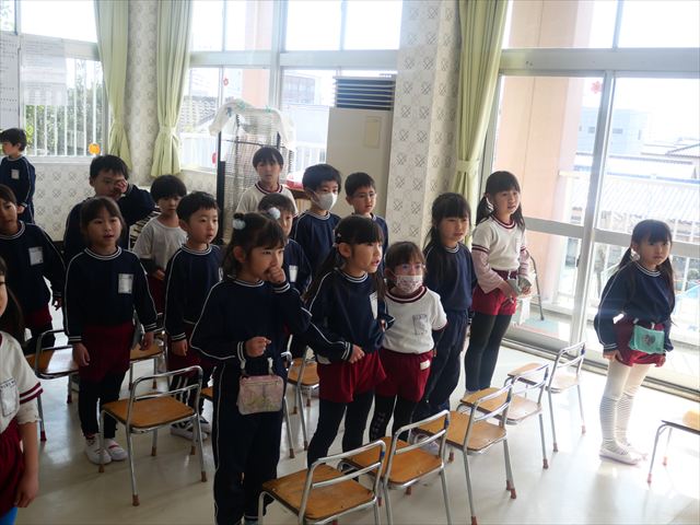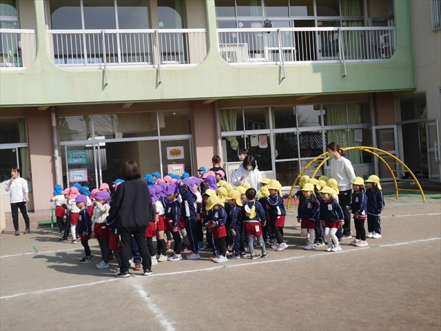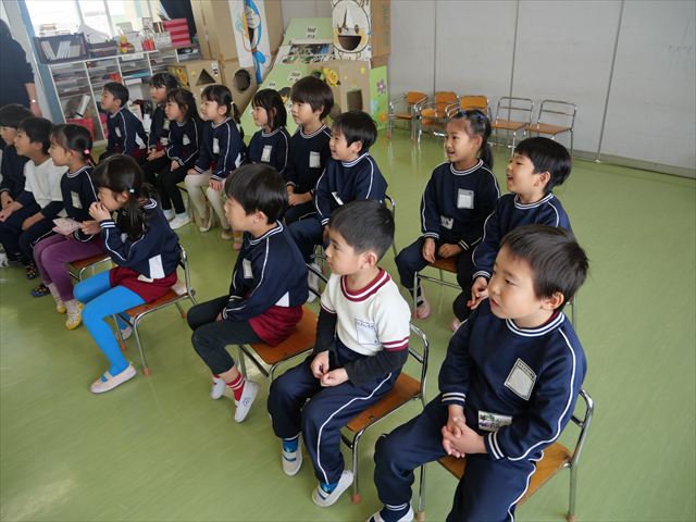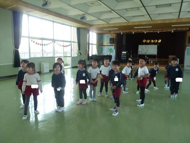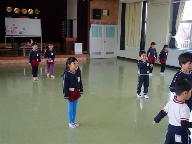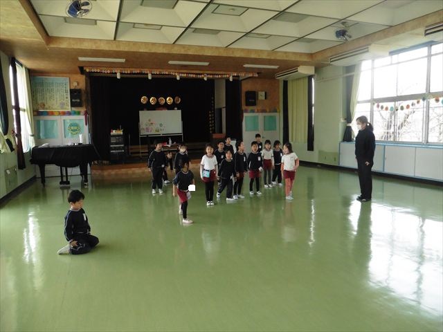 あっという間に3月になってしまい、幼稚園生活もあと1ヶ月となりました。今日から卒園式の練習を始めました。お別れの言葉と歌の練習をすると少しずつ卒園を意識する子も増えてきました。立派な式になるように練習を頑張っていきたいと思います。