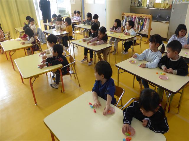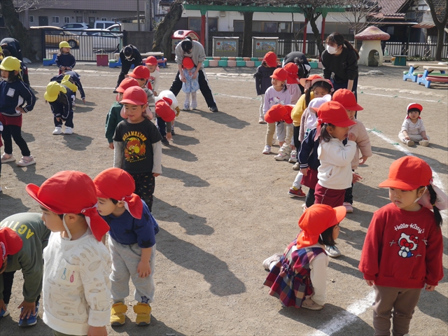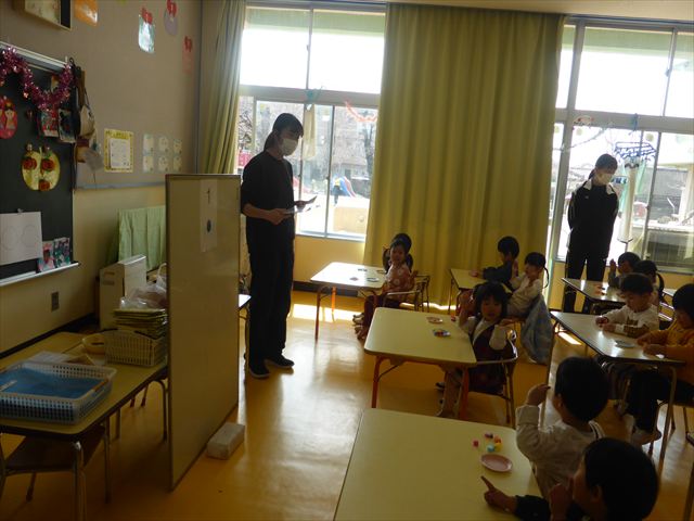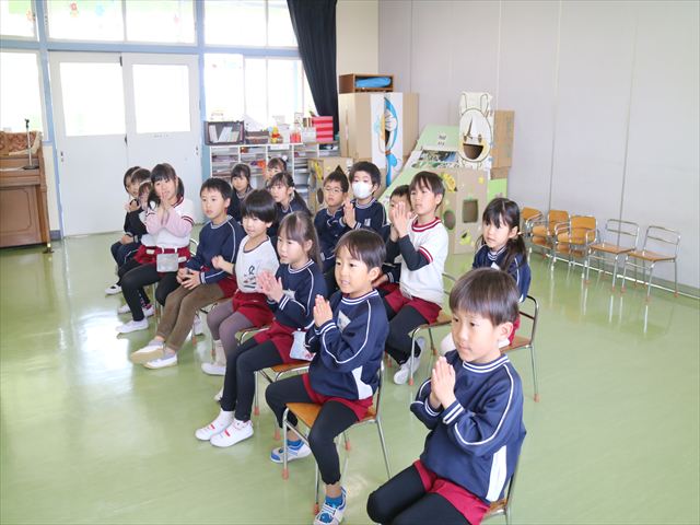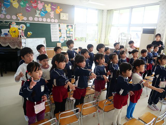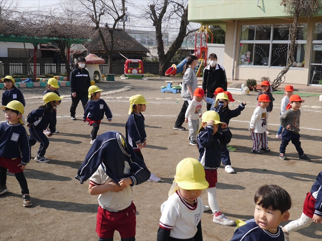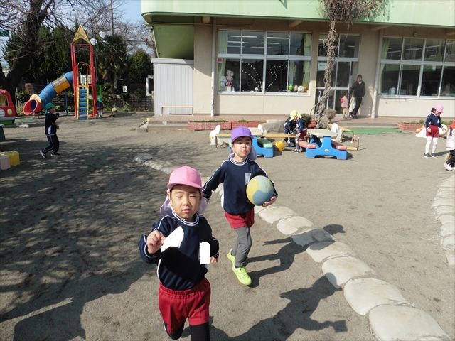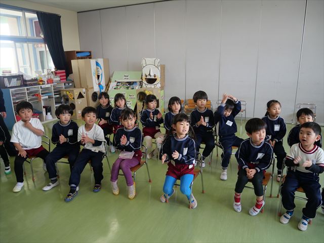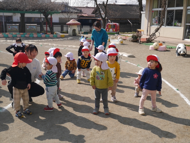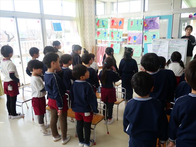 あっという間に3月になってしまい、幼稚園生活もあと1ヶ月となりました。今日から卒園式の練習を始めました。お別れの言葉と歌の練習をすると少しずつ卒園を意識する子も増えてきました。立派な式になるように練習を頑張っていきたいと思います。