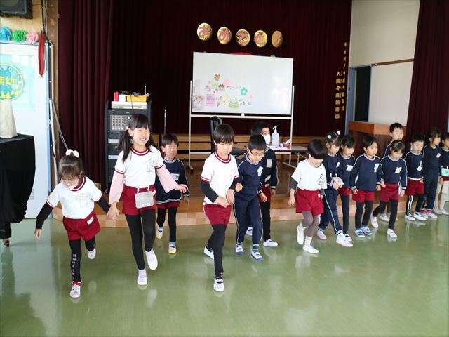 今日は、年長さんたちへ向けて、子どもたち同士の「お別れ会」を行いました。年中さんや年少さん、たんぽぽさんたちは、「今までいろいろ面倒見てくれてありがとう!」という感謝の気持ちと、「小学校へ行っても頑張って下さい!」という願いを込めて、みんな出し物を頑張り「お別れ会」を盛り上げてくれました!(^_^)