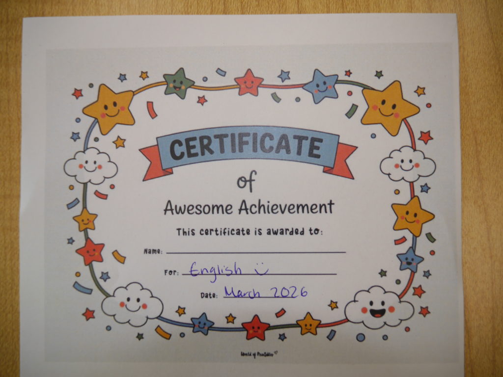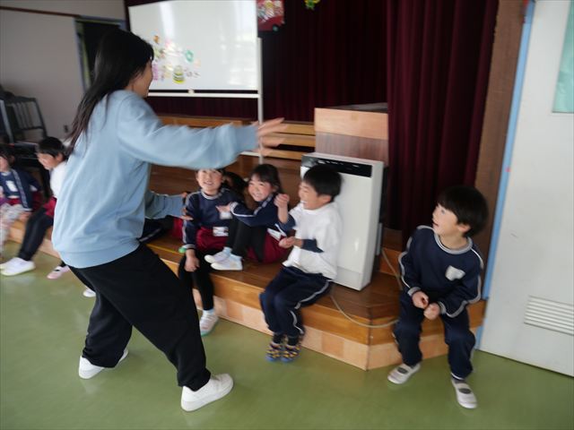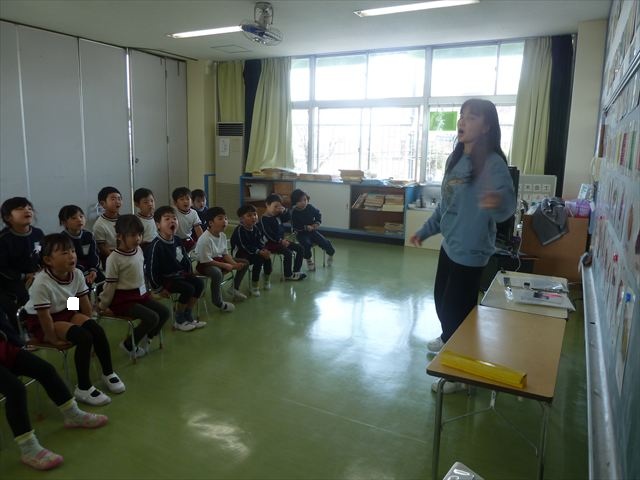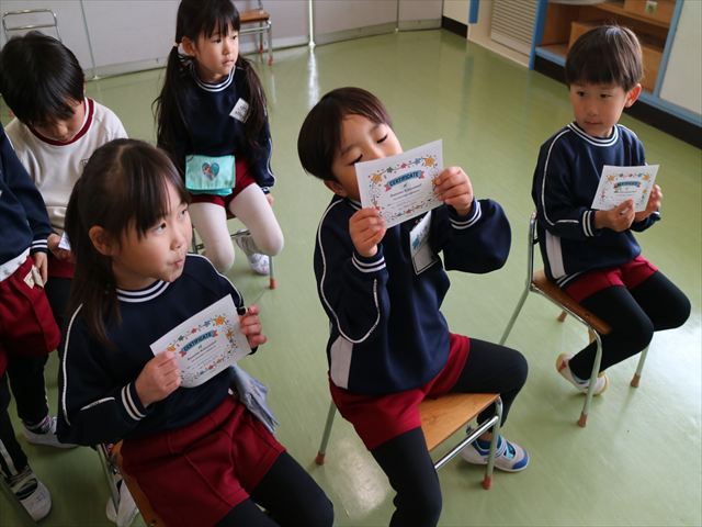 今日はヤナ先生との最後のALT英語教室でした。今までの単語の復習、ABCのうた、オオカミさん今何時?のゲームをしました。最後にはヤナ先生から終了証書のプレゼントもあり、みんなで感謝の気持ちも伝えました!