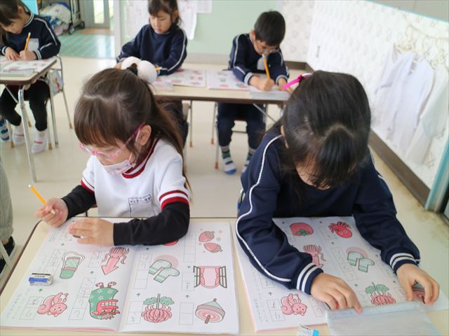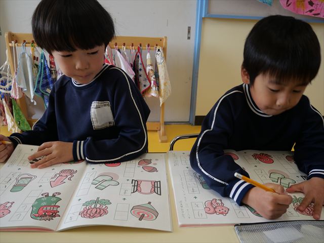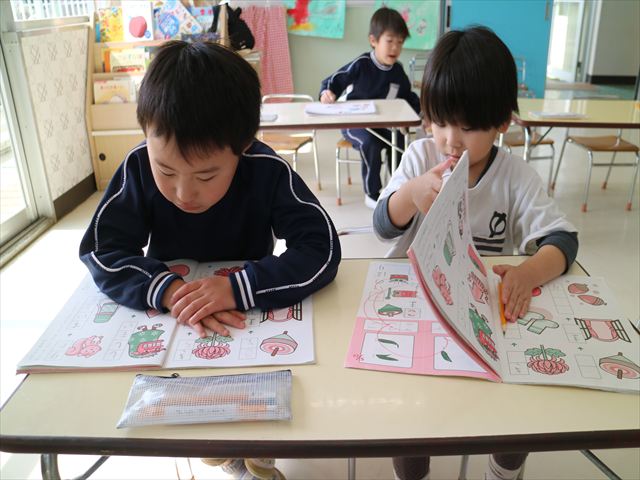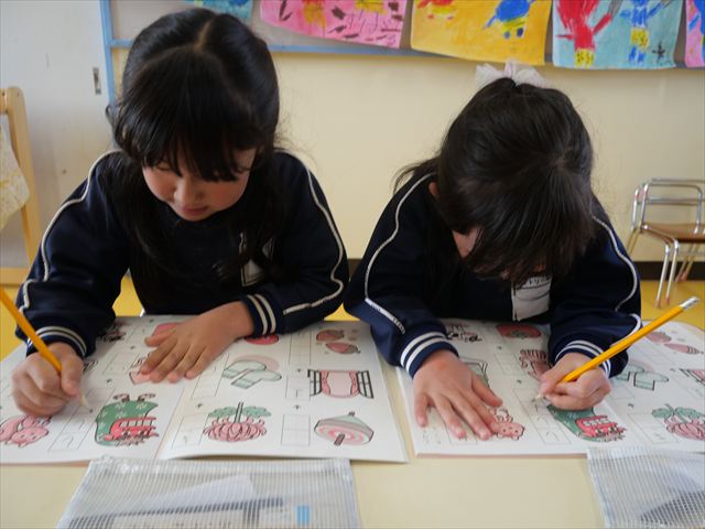 国語の時間では「ワーク」をしました。今回はしりとりのページでしたが、みんな理解をしてよく出来ていました!