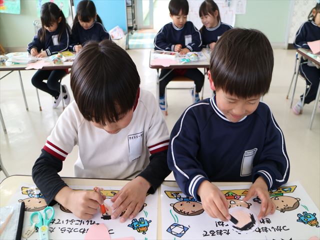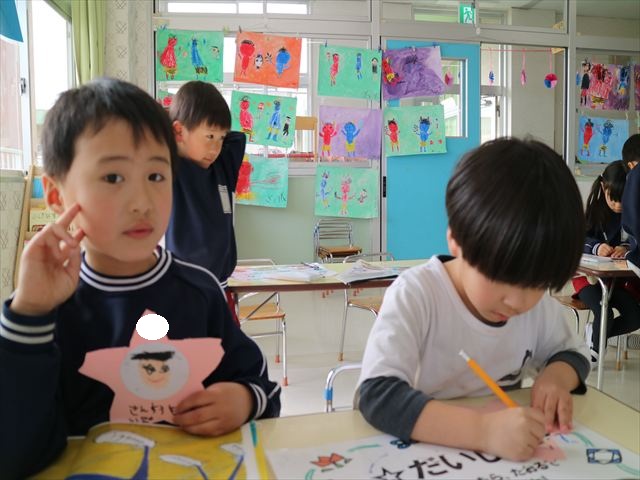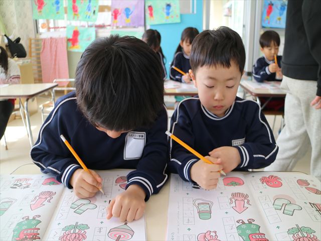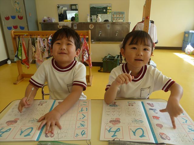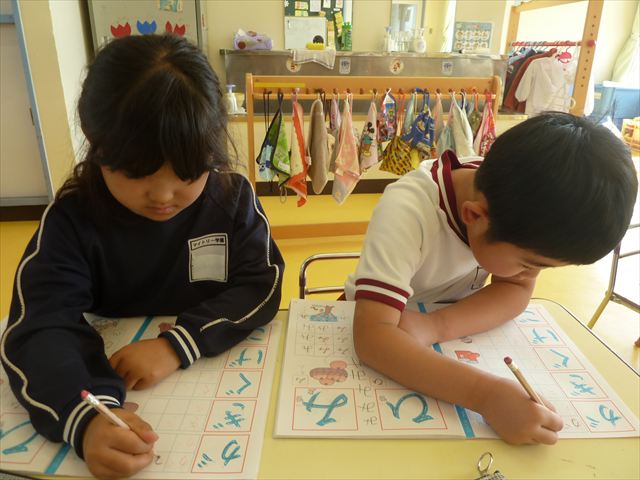 英語の後はもじあそびをしました。「がぎぐげご」を書きました。集中して書くことができました!