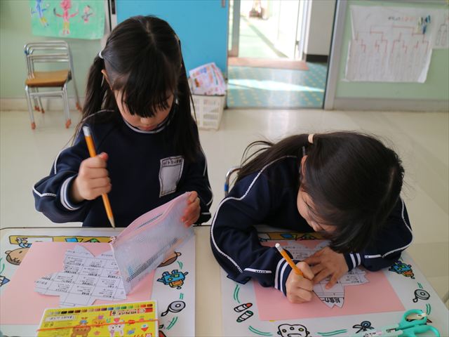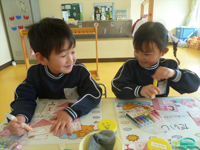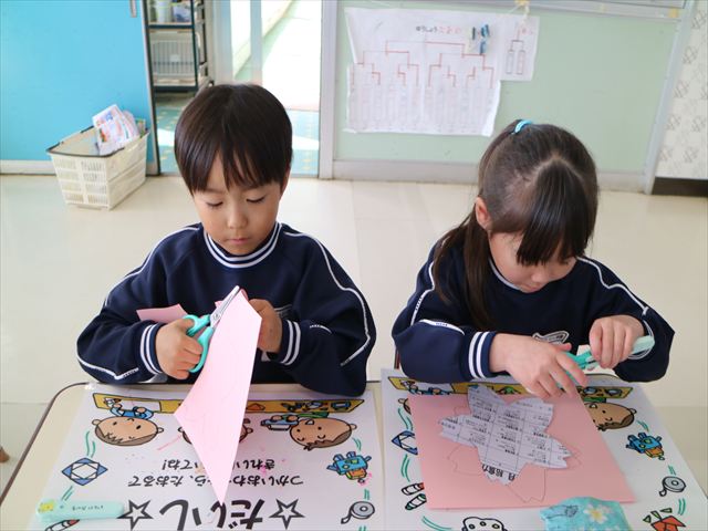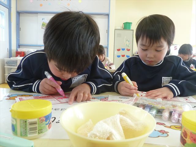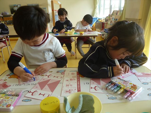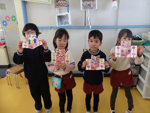 午後は、月刊誌製作の「おひなさま」作りをしました。午後の活動でしたが、はさみ、ペン、のりを使って上手に仕上げることができました。時間の都合で色塗りが途中の子もいたのですが、今日持ち帰りました。