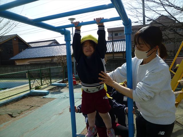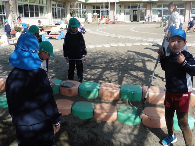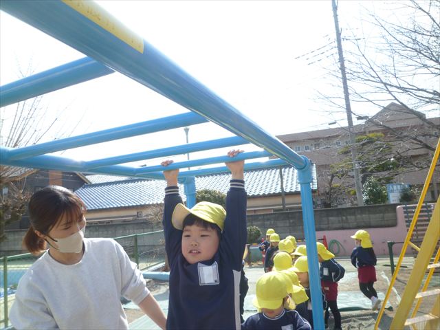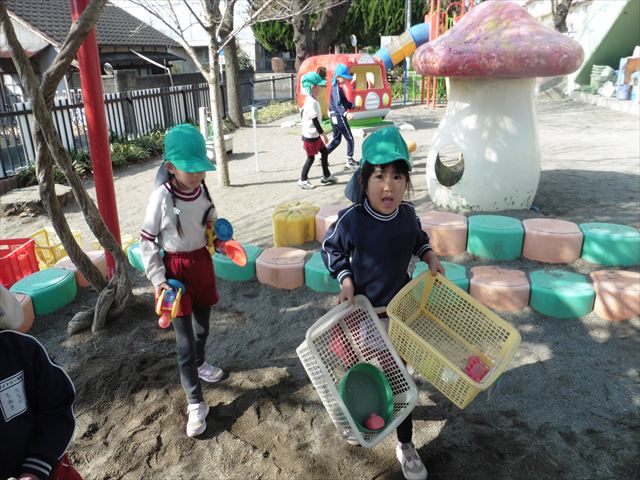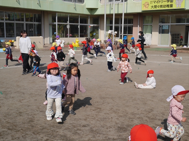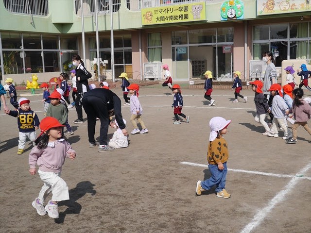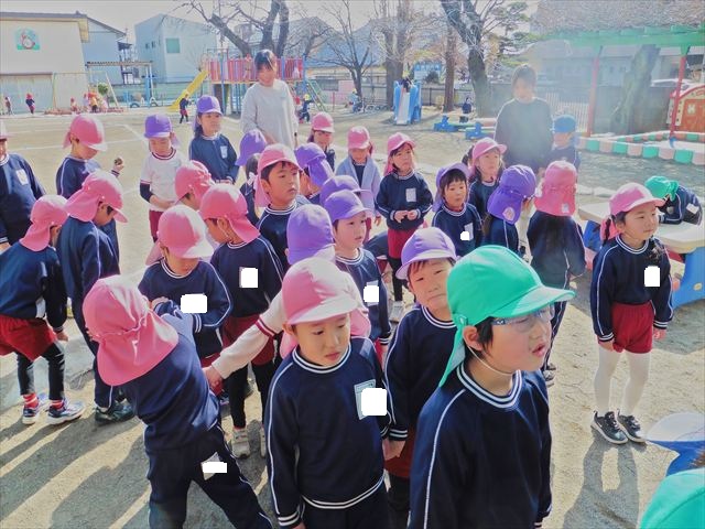 今日は、朝礼で園長先生から「3月になり、本格的な春を迎えました。これから暖かい日がどんどんやってくるから、お外で春を見つけながらいっぱい遊んでください。だけど、明日と明後日は雨や雪になりそうです。残念だけど、年長さんや年少さんのお別れ遠足は、延期になりそうです。でも、金曜の縦割りお別れ遠足や来週の延期された遠足はいい天気になるから、楽しみにしていて下さい!」と話がありました。その後、今日から新しくマイトリーの仲間になったお友達3人を紹介しました。みんな仲良くして下さい。(^_^)v ヘ(^o^)/