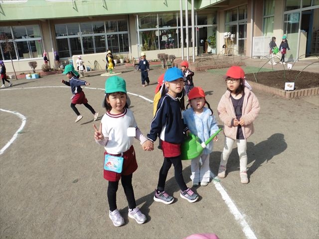 今日から年長さんに朝のパトロール隊をマンツーマンで教えてもらう活動を始めました。いわゆる年長さんからの引継ぎです( ◠‿◠ )水やり、見回り、片付け、確認、草むしりなどグループに分かれて自分の係りの仕事をするという内容です。年長さんがやさしくリードしてくれて1日目を終えました。
