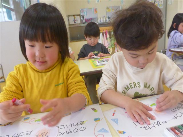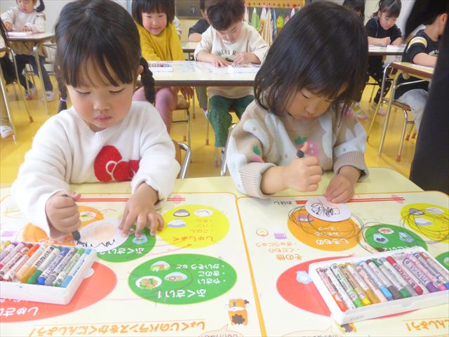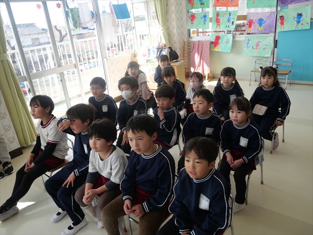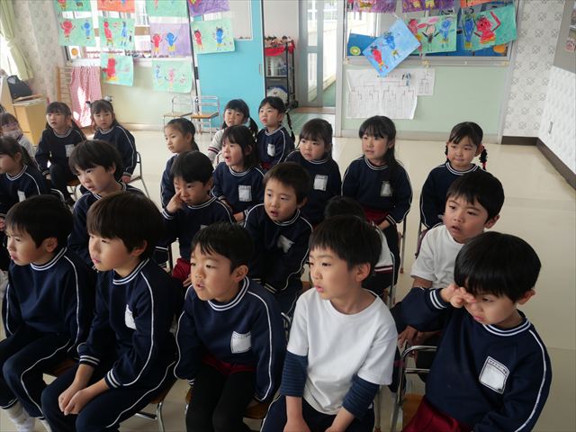 午後は道徳の時間として、年中組残り1か月の生活について話し合いました。まだまだみんなと楽しく過ごせるようにするにはどうしたらいいかな?年長さんになる事の不安や期待などを聞いていきました。みんなよく聞いてくれました!