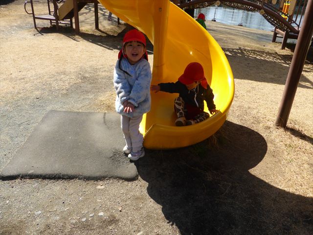 お弁当を早く食べ終えてしまったので、まだまだ遊び足りない子どもたちのために、食後も存分に遊具で遊びまくりました。とにかく楽しい1日を過ごすことができて何よりでした。またひとつ幼稚園での楽しい思い出が増えました(^^)v (^_^)