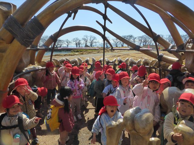 今日は、年長さんたちの幼稚園最後の遠足「お別れ遠足」でした。年長さんたちは、学年行事のたびに天候が悪い日が多く、悲しい思いをしていたことが多かったのですが、さすがに最後の予備日の遠足は、「天の神様」も味方してくれたようです。お別れ遠足の出発式は、たんぽぽさんも同じ日なので、たんぽぽさんと一緒に行いました。そして、ぽかぽか暖かい最高の遠足日和の中、最後の思い出を作りに太田市にある「ぐんまこどもの国」へ行ってきました。たくさんの保育園・幼稚園も来ていましたが、絶好の天候に恵まれ、子どもたちも気持ちよく思う存分遊具遊びを満喫することができました!(^_^)v