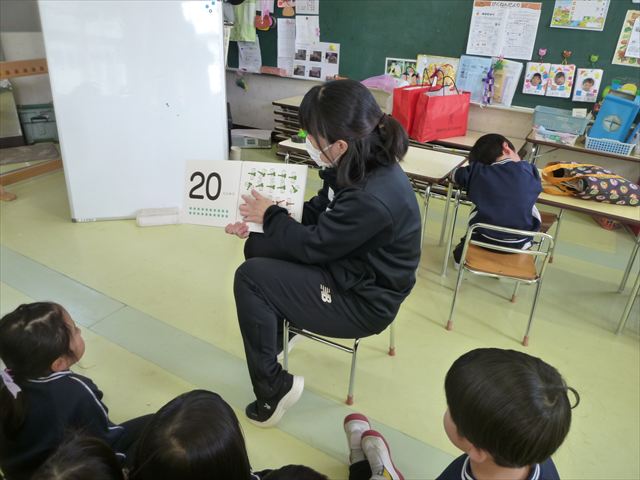 ^^)雲梯は最後までできる子が数名いました。色々な運動を楽しみながら挑戦していきたいと思います。その後は戸外遊びを楽しみました。とっても嬉しそうな年少さんでした。午後は、算数の時間をしました。かずのえほんを読みました。数の数え方にも色々あることを知りました(