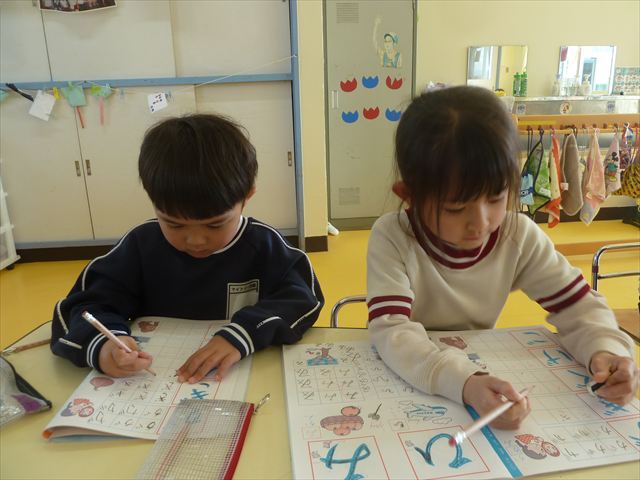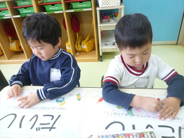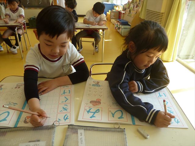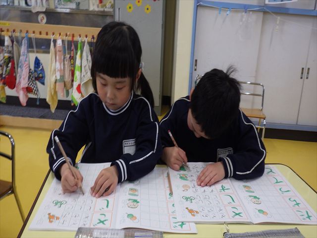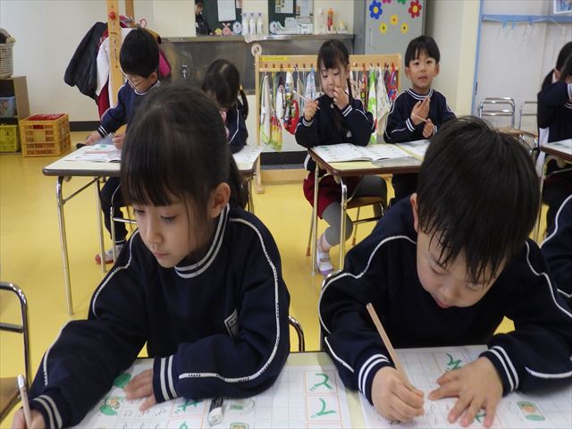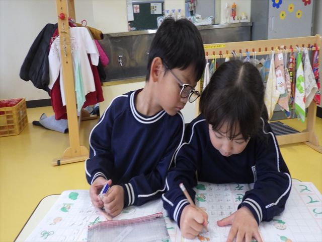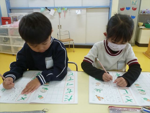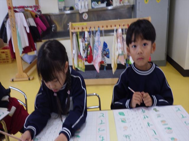 今日のもじあそびは「ざじずぜぞ」を書きました。短時間で書けるようになって来たのですが、書き順も正しく書けるように一文字一文字丁寧に書けるよう声を掛けながら進めていきました。