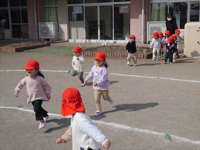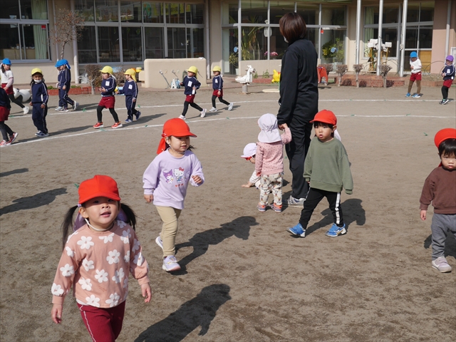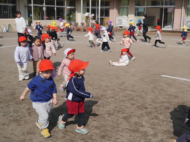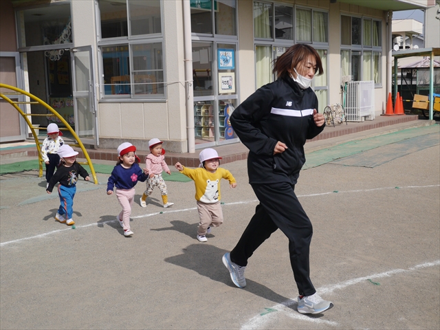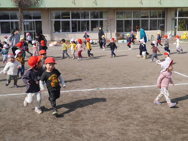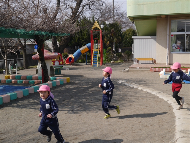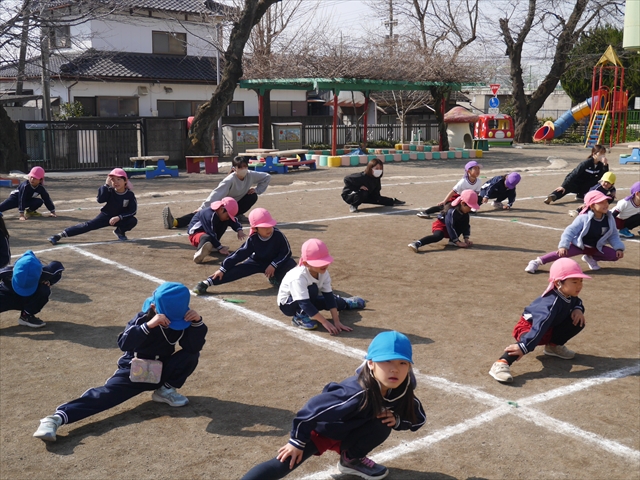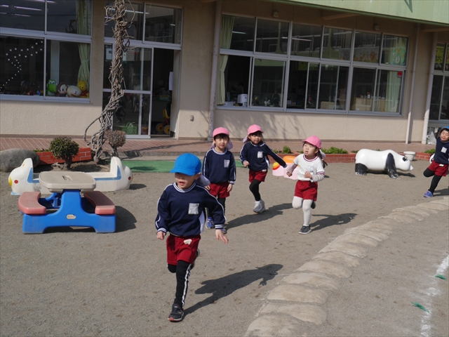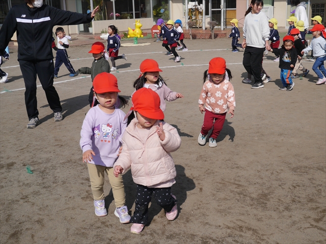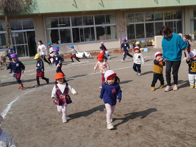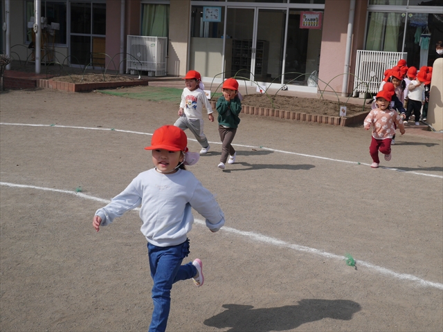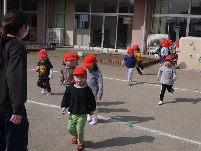今日は、体操とマラソンをしました!久しぶりのマラソンで子どもたちは気合十分な様子でした。天気も良く温かい中でのマラソンでじんわり汗をかいて良い運動になりました!