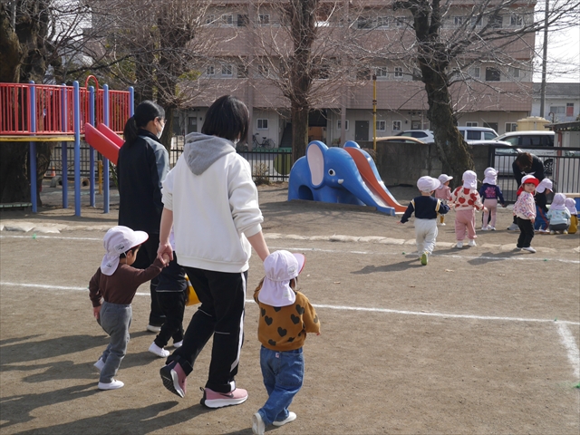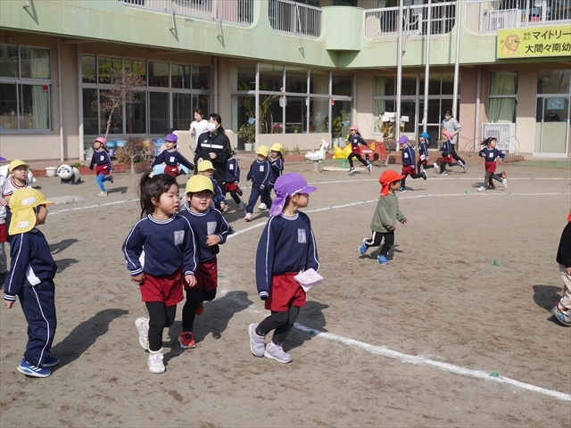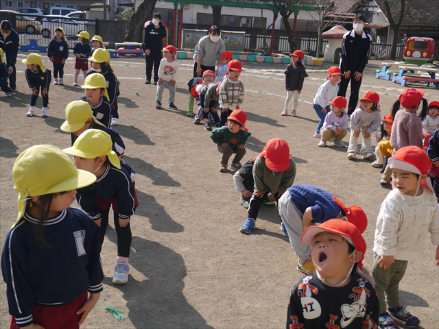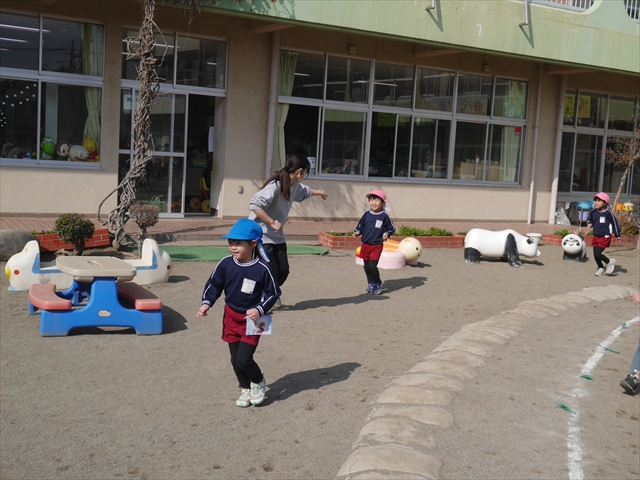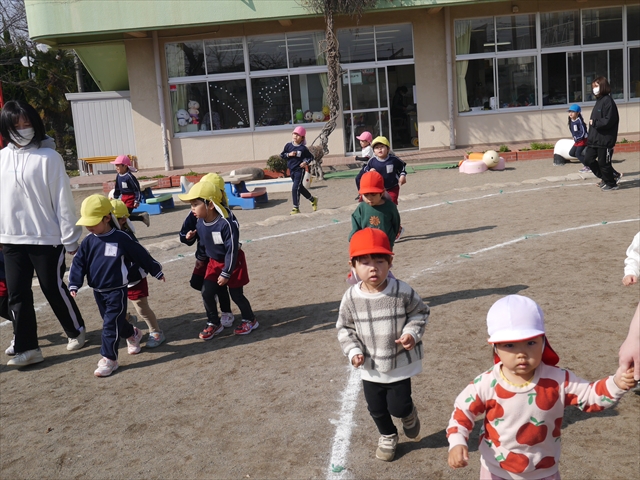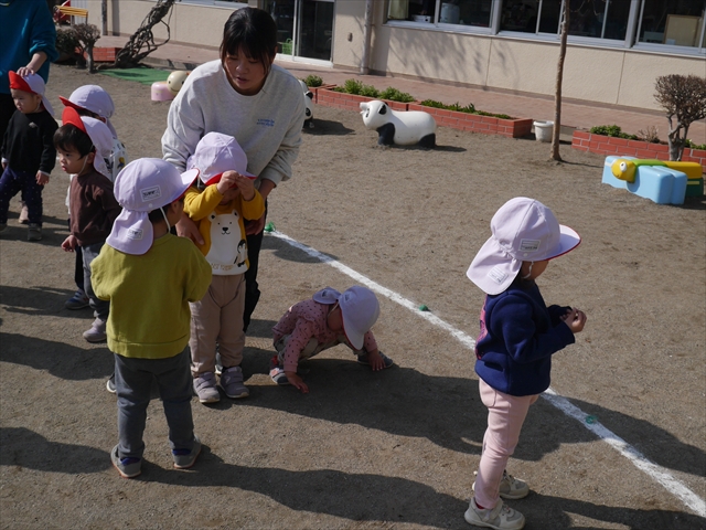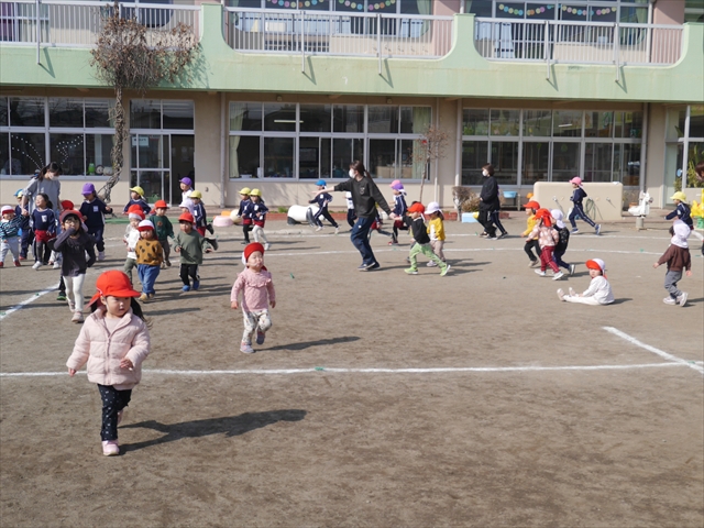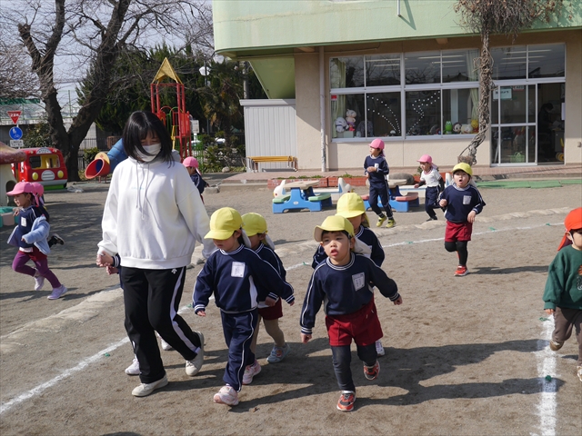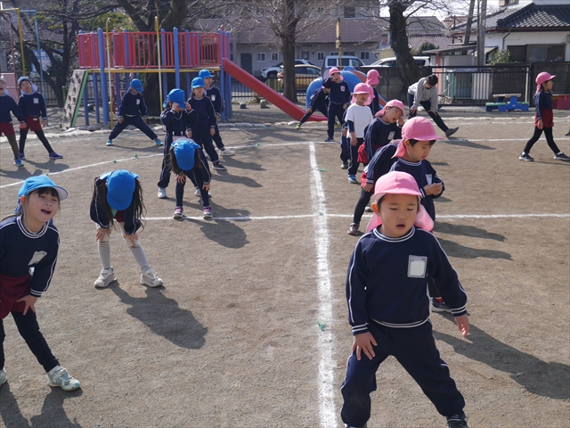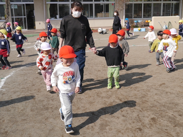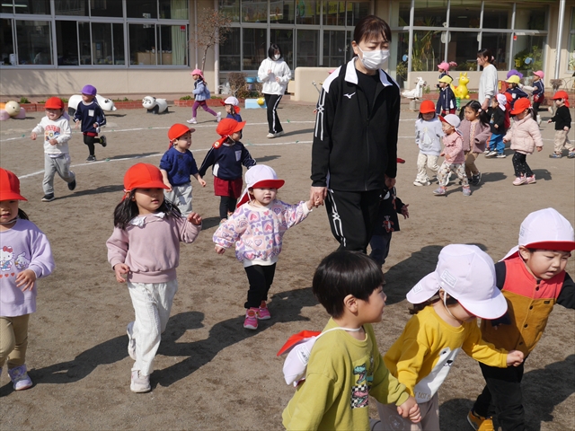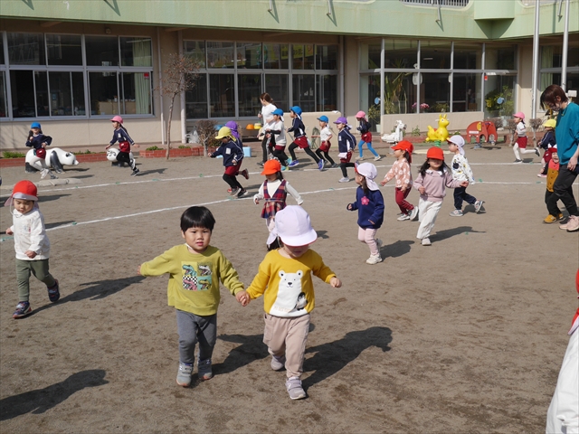 今日は、体操とマラソンをしました!久しぶりのマラソンで子どもたちは気合十分な様子でした。天気も良く温かい中でのマラソンでじんわり汗をかいて良い運動になりました!