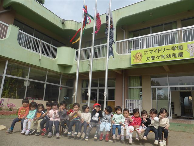 週明けの今日から、幼稚園にこいのぼりがあがりました!みんなで記念に写真撮影☆「おおきいね~!」と上を見上げて嬉しそうなたんぽぽさんでした(^^)/