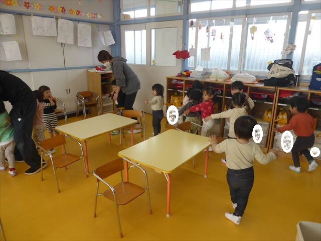 午後は室内遊びをしました。友だちを誘い合いながら楽しめていました(^^)