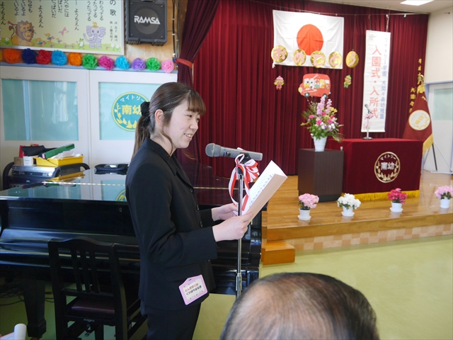 今日は朝から暖かく、桜の花も桜吹雪から葉桜へ急がされてしまうような春爛漫の日となりました。そんな春の良きに日に、今年度の入園式・入所式を迎えることができました。本日午後1時30分から、遊戯室で今年度の「第48回入園式・入所式」が行われました。保護者の皆さん、お忙しい中ご出席いただき、ありがとうございました。m(_ _)m