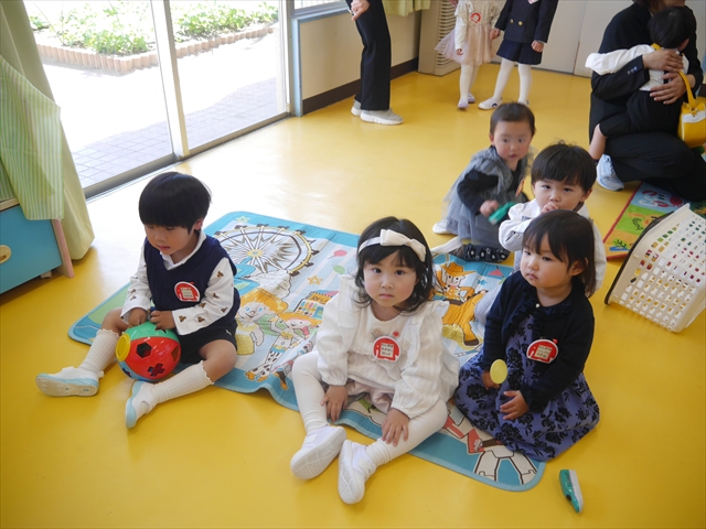 今日からいよいよ一学期がスタート!朝は「ママがいい~」「おうちかえる~」と泣き声の大合唱でしたが、外に出るとみんな泣き止み、お友だちや先生と楽しそうに遊んでいました!(^^)!お片づけをしてお部屋に入る前に、記念に集合写真をパチリ☆いつか全員がカメラ目線できる日がくるのかな…!?