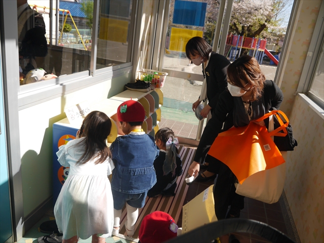 新年度の幼稚園生活が始まり5日目となりました。新入園・新入所の子どもたちは、朝からわくわくどきどきで、楽しみにしながら登園する子もいれば、まだまだ「ママがいい~!お家帰る~!」の泣き声もあちらこちらから聞こえます。そんな子どもたちの心を和らげるために、園庭には「こいのぼり」が泳ぎ始めましたが、玄関・玄関ホールも5月5日の「端午の節句」に向けて、「こどもの日バージョン」にしました。 (*^_^*) (^_^)b また、今日は「花まつり」を行うので、花いっぱいの玄関にしました!ヘ(^o^)/
